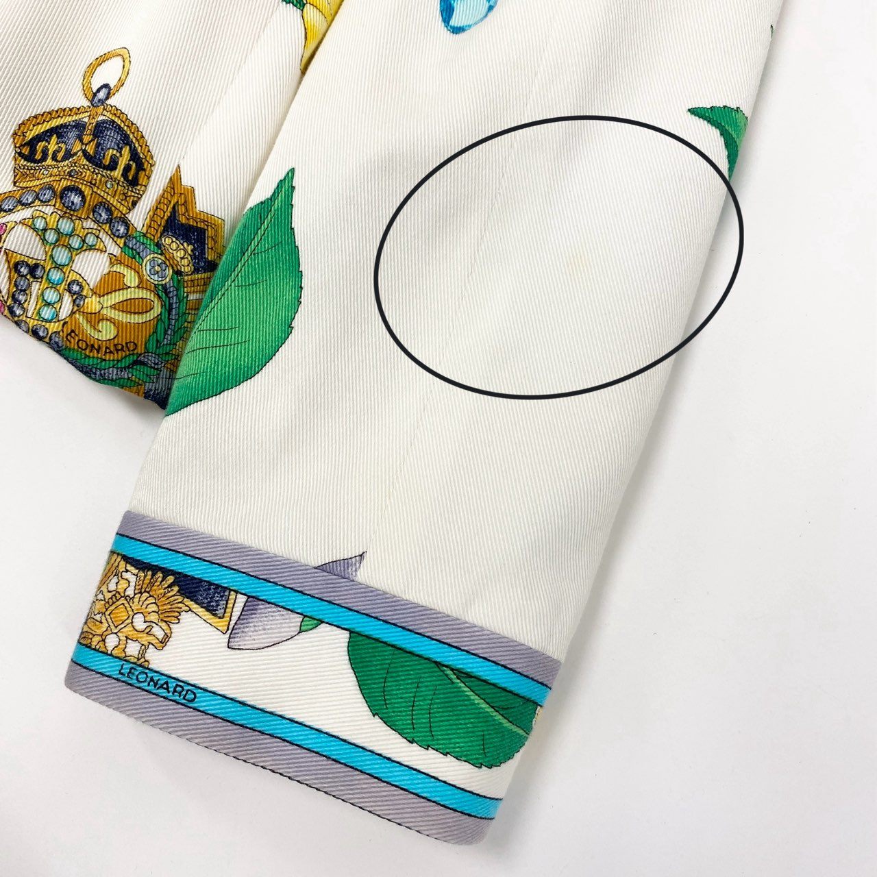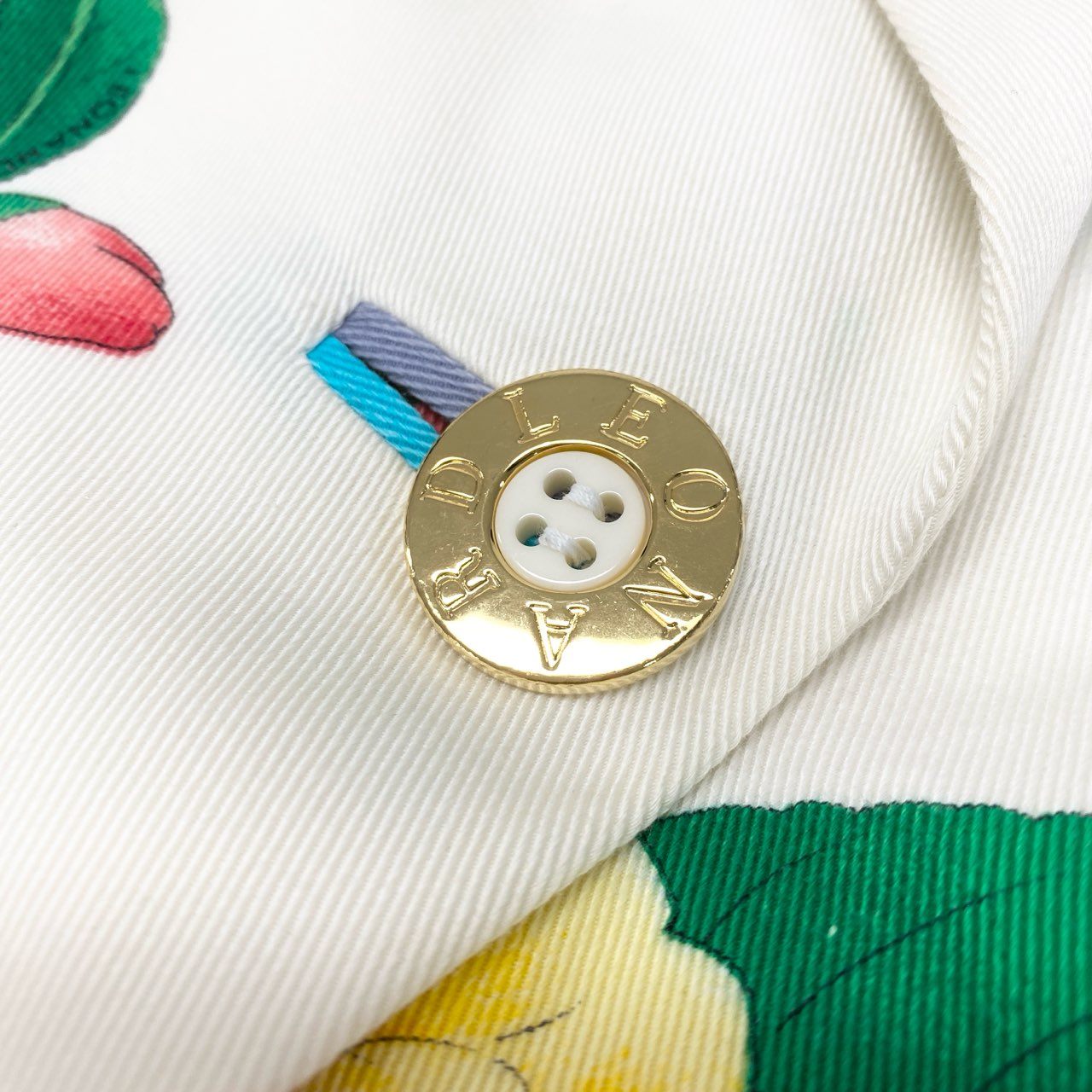 59k1 LEONARD FASHION レオナール ファッション 花柄プリント 金ボタン テーラードジャケット ブレザー 日本製 11AR Lサイズ相当 ホワイト コットン レディースo07t