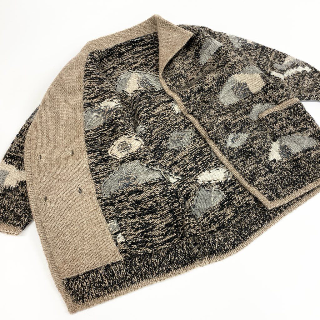 34l24 SIROGOJNO シロゴイノ ヴィンテージ ハンドニットジャケット サイズM 茶系 ピュアウール マケドニア製t18r