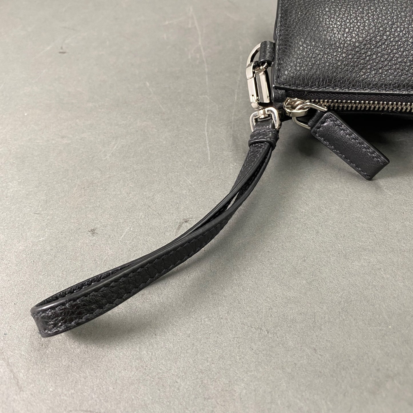 k4《 美品 》PRADA プラダ レザークラッチバッグ 三角プレート 本革 ブラック レザー セカンドバッグ ポーチ 中ポケット×2 カードポケット×6