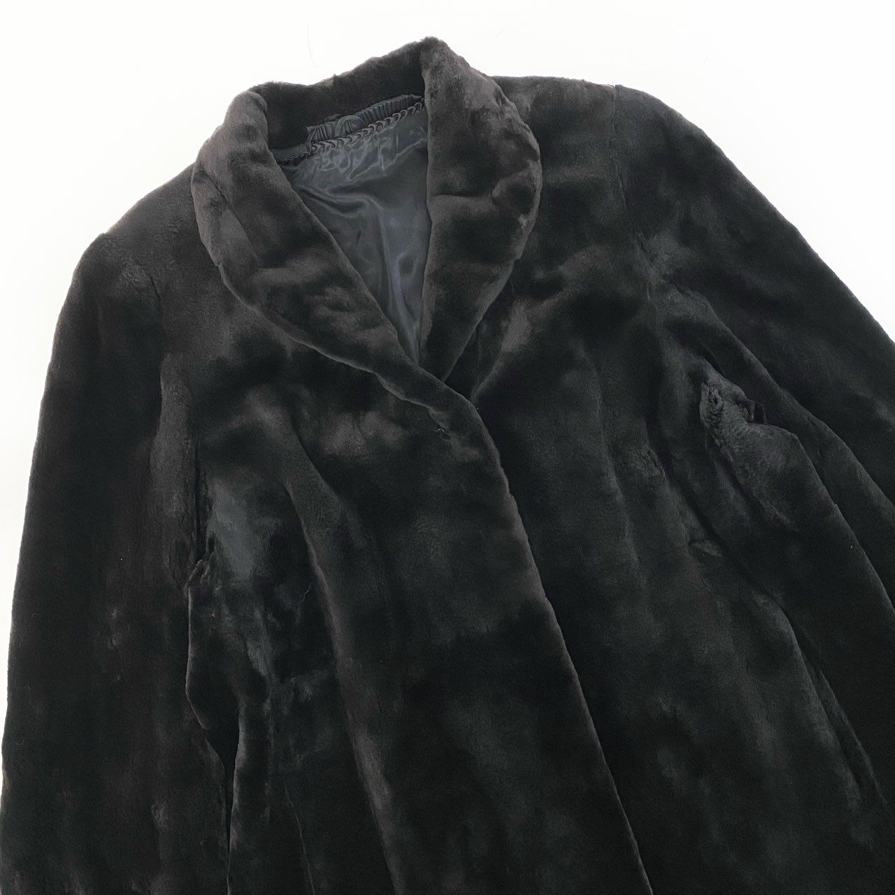 ダークブラウンカラーのシェアードミンクを使用した、落ち着きと高級感を兼ね備えた毛皮コートです。毛足を短く整えたマットな質感で、重たく見えにくく上品な印象に仕上がっています。シンプルな無地デザインと銀サガ(SAGA MINK)表記により、素材の良さが際立つ一着です。ロング寄りの丈感で防寒性が高く、冬のお出かけやきれいめスタイルに好相性。パンツ・スカートどちらにも合わせやすく、長く愛用できる定番アイテムです。