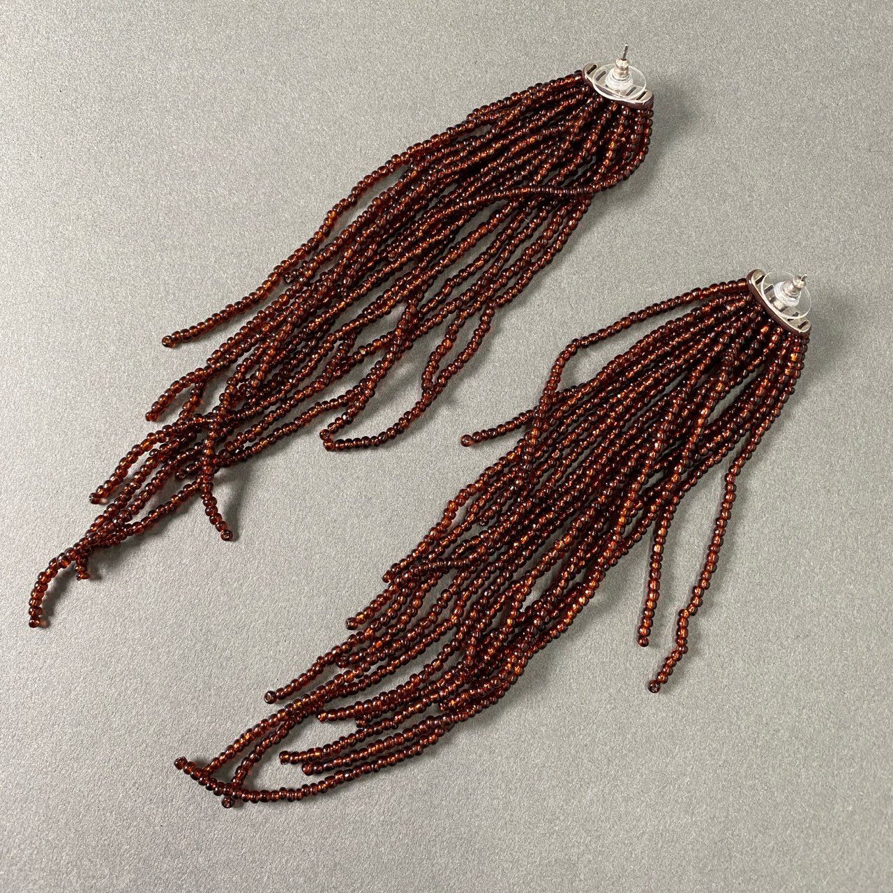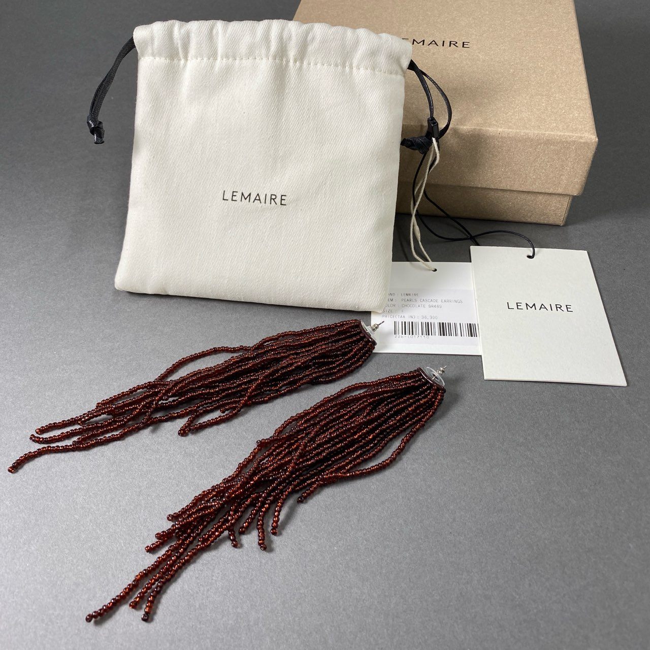 Pf16 定価¥36,300 LEMAIRE ルメール PEARLS CASCADE EARRINGS カスカーダ ビーズピアス ブラウン イヤリング アクセサリー フリンジ 箱付き