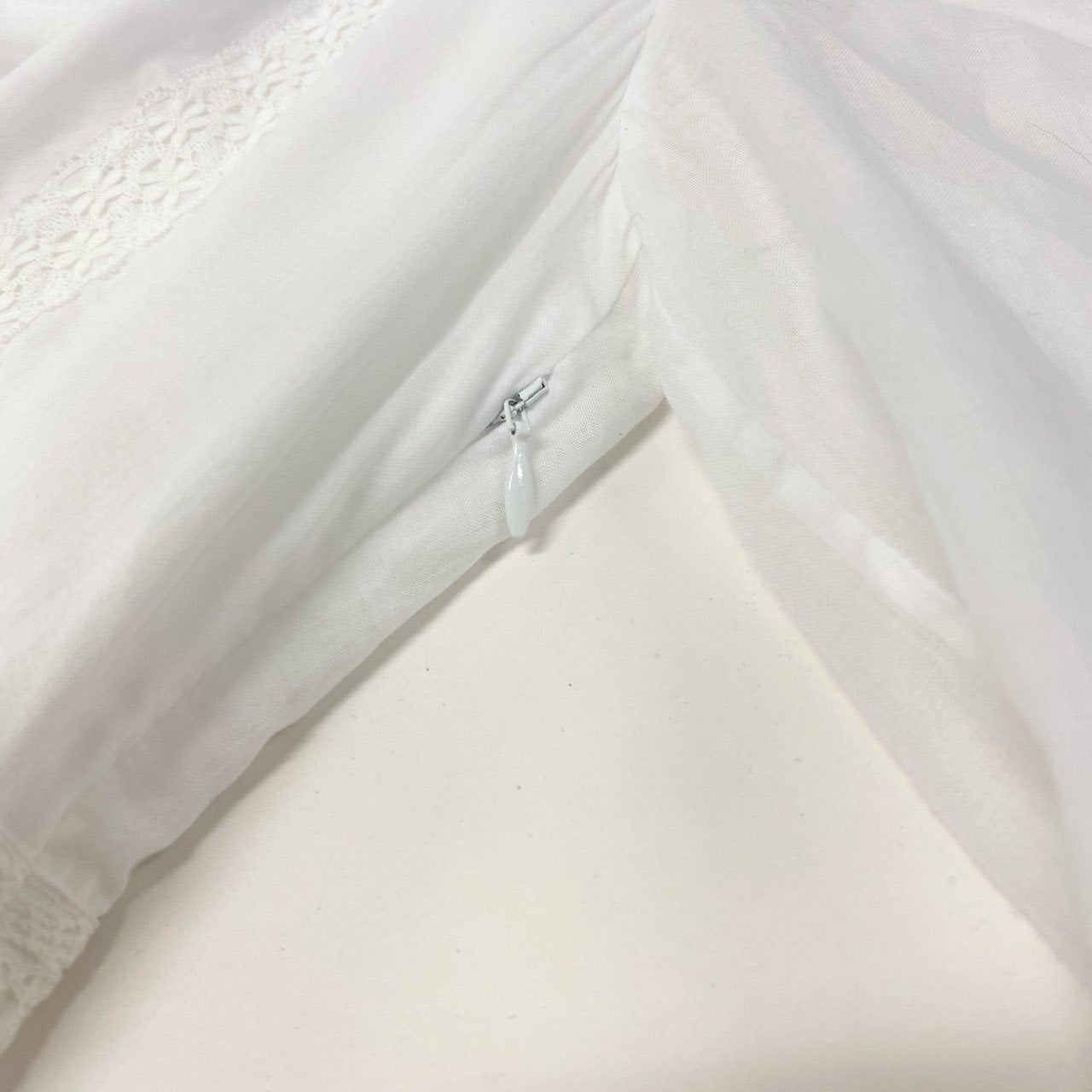 カラーは清潔感のあるピュアホワイトで、胸元のピンタック装飾やマカダムボタン、繊細なレース切り替えが美しいCELINEのマキシドレスです。素材は軽やかでマットなコットンベースの質感で、ふんわり柔らかく落ちるナチュラルなドレープ感が特徴。深めVネックとウエスト位置の切り替えによって、スタイルをすっきり見せる女性らしいシルエットに仕上がっています。デイリーはもちろん、リゾートや特別なシーンにも映える洗練された一枚。