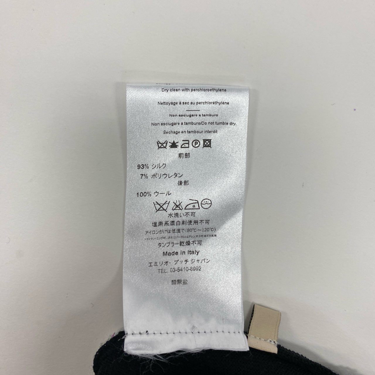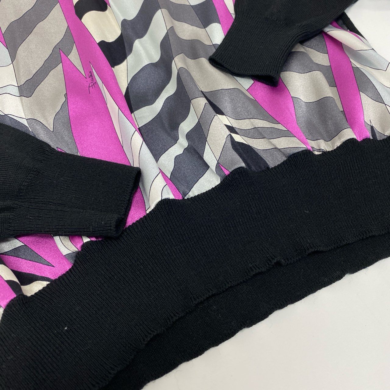 14j9 EMILIO PUCCI エミリオプッチ イタリア製 切替 ニットセーター クルーネック 総柄プリント ロングスリーブ 薄手 シルクウール 56KR60 XS ブラックu02t