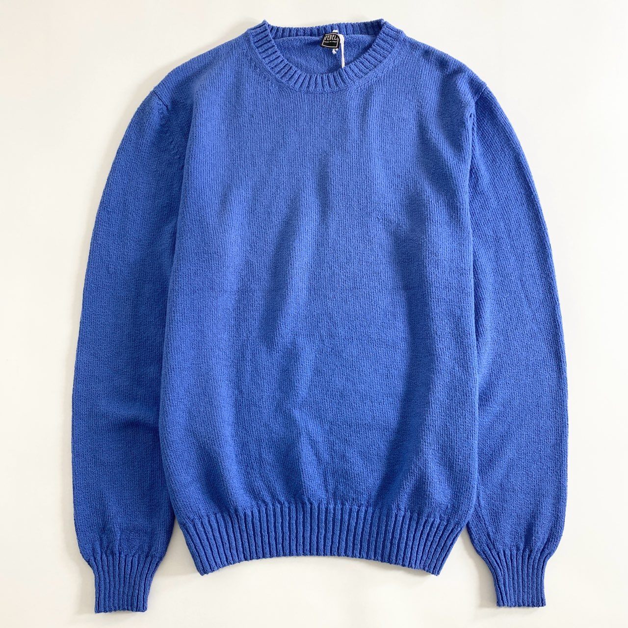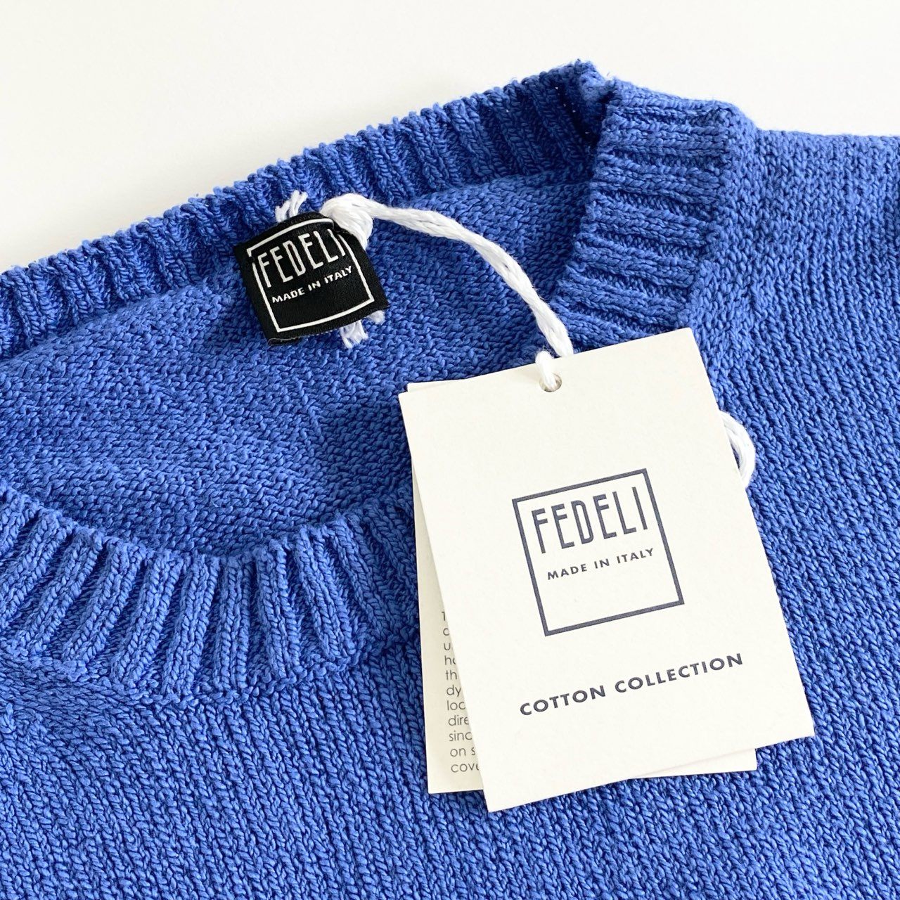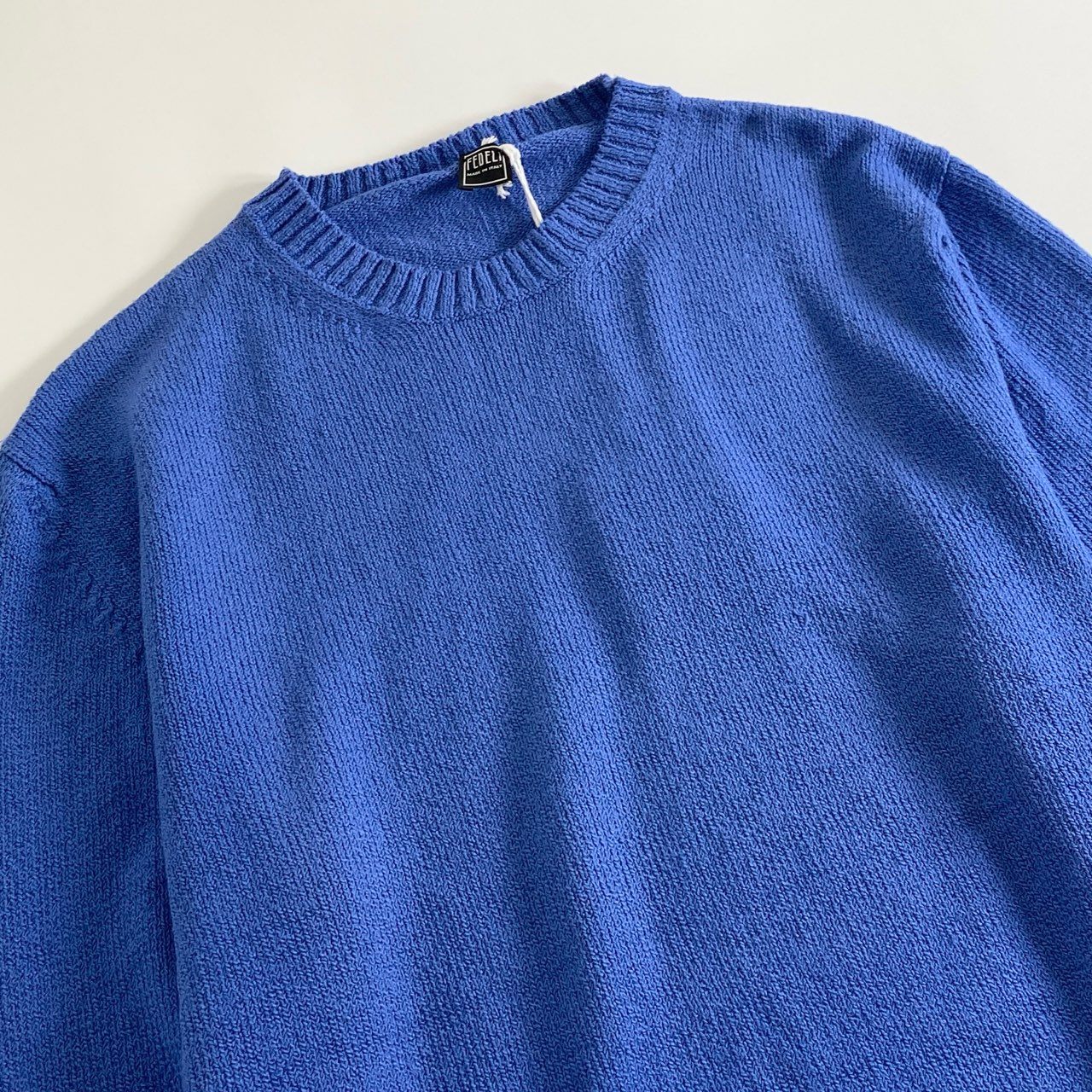 77j3 《タグ付》 FEDELI フェデーリ パイルクルーネックニットトップ セーター 50 ブルー イタリア製