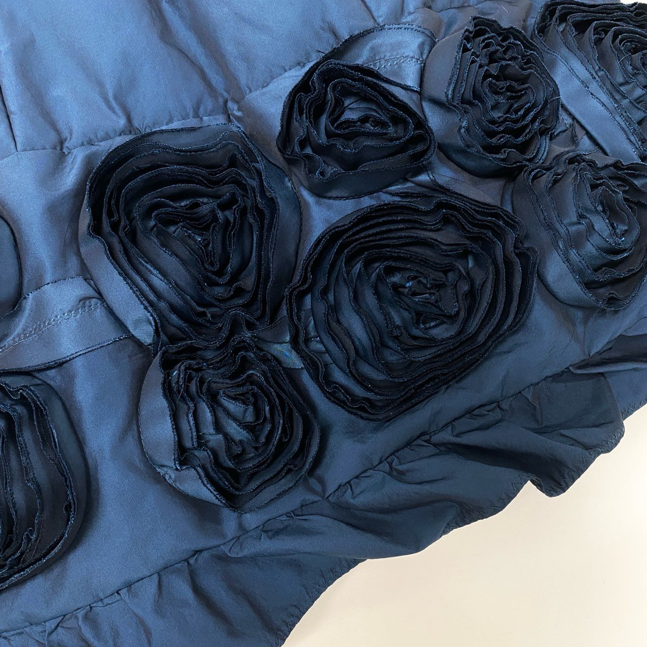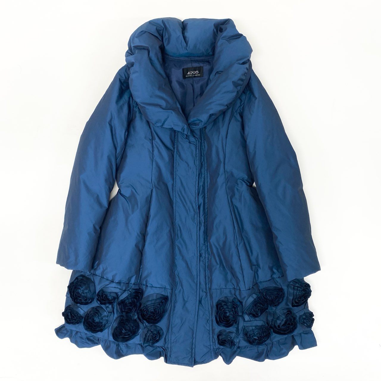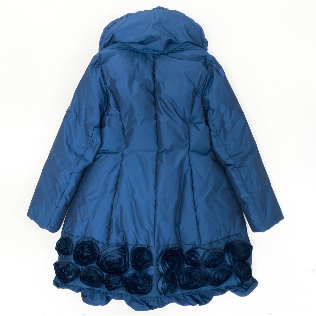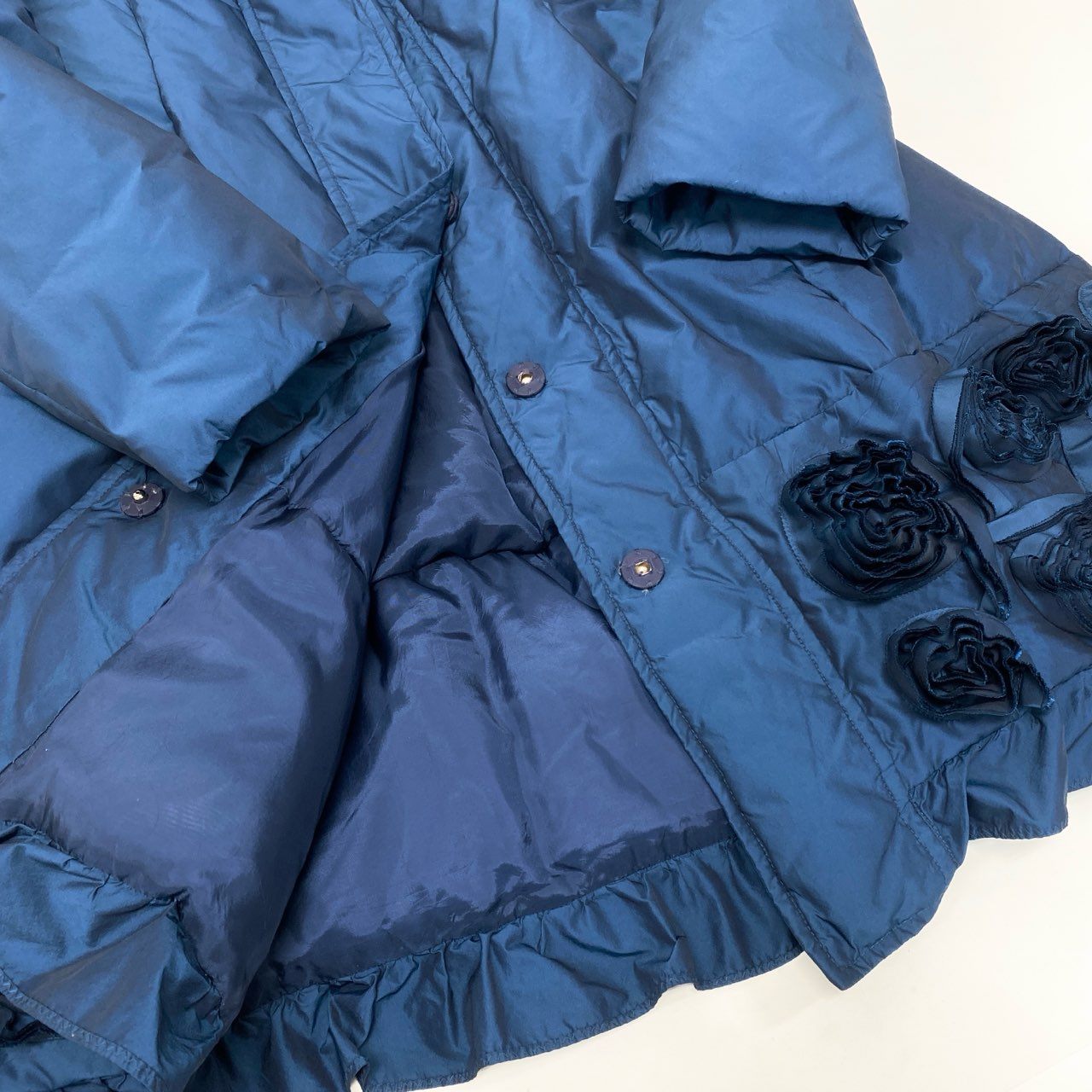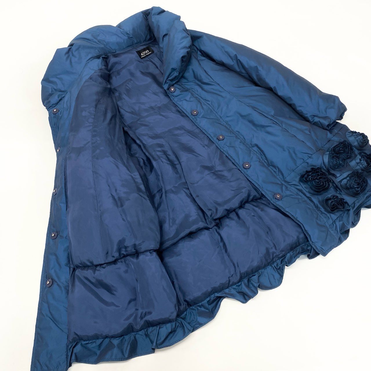 40k18【美品】SHIZUKA KOMURO シズカコムロ ダウンコート ロングコート 薔薇 Aライン 42サイズ ネイビー レディースu02t