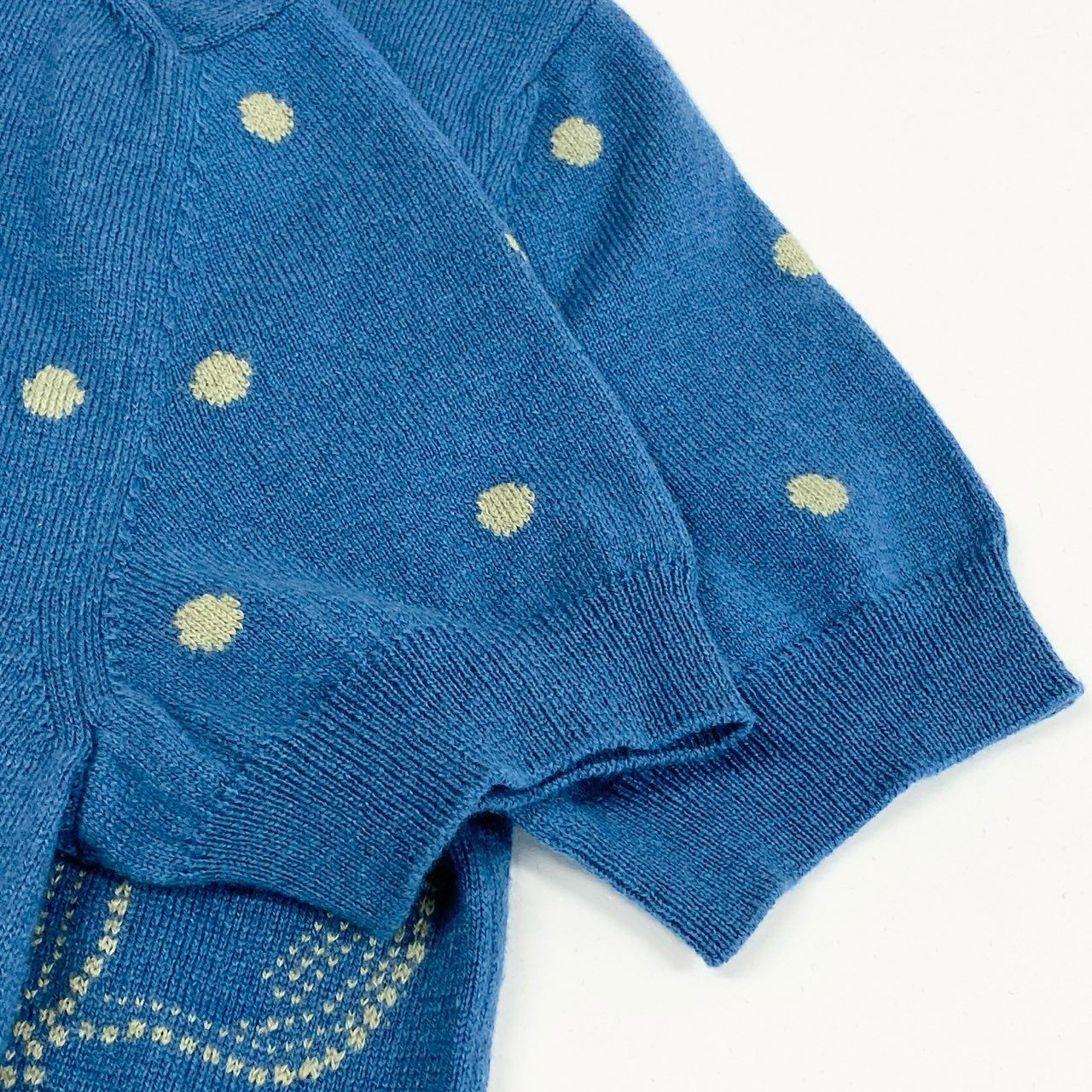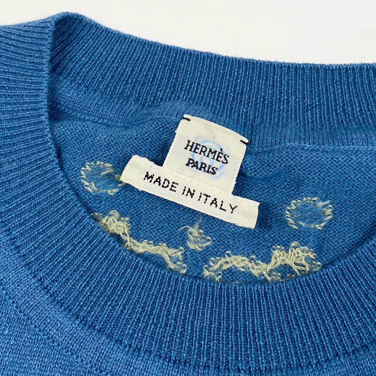 57a13 HERMES エルメス BRIDES DE GALA 半袖ニットセーター カシミヤブレンド ドット柄 イタリア製 レディース 女性用 3E2623D8 36 ブルー系o07t