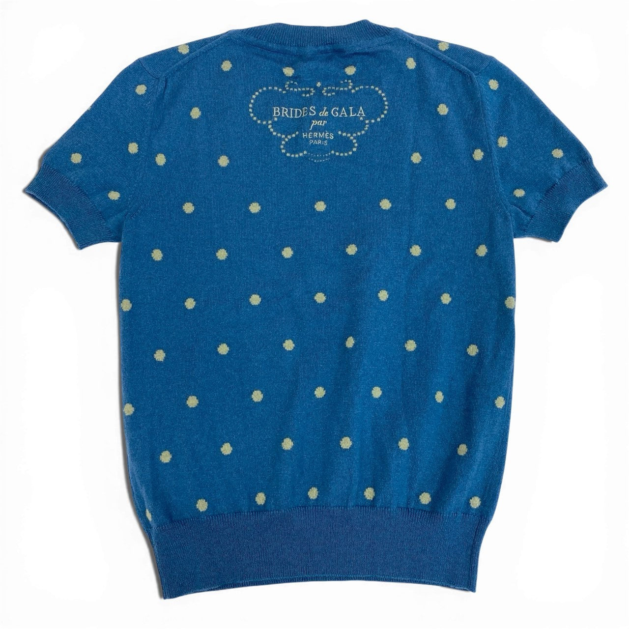 Ia13 HERMES エルメス BRIDES DE GALA 半袖ニットセーター カシミヤブレンド ドット柄 イタリア製 レディース 女性用 3E2623D8 36 ブルー系o07t