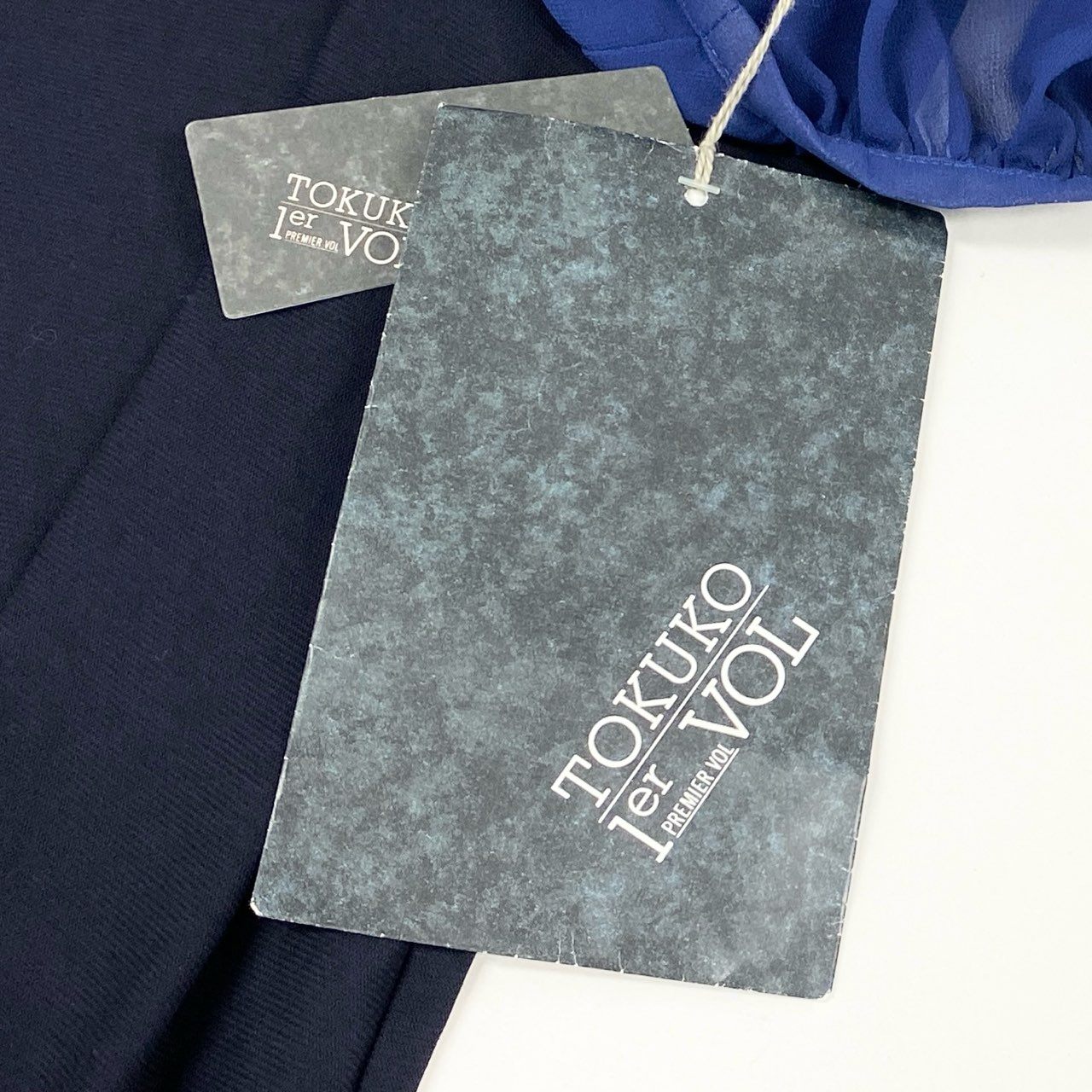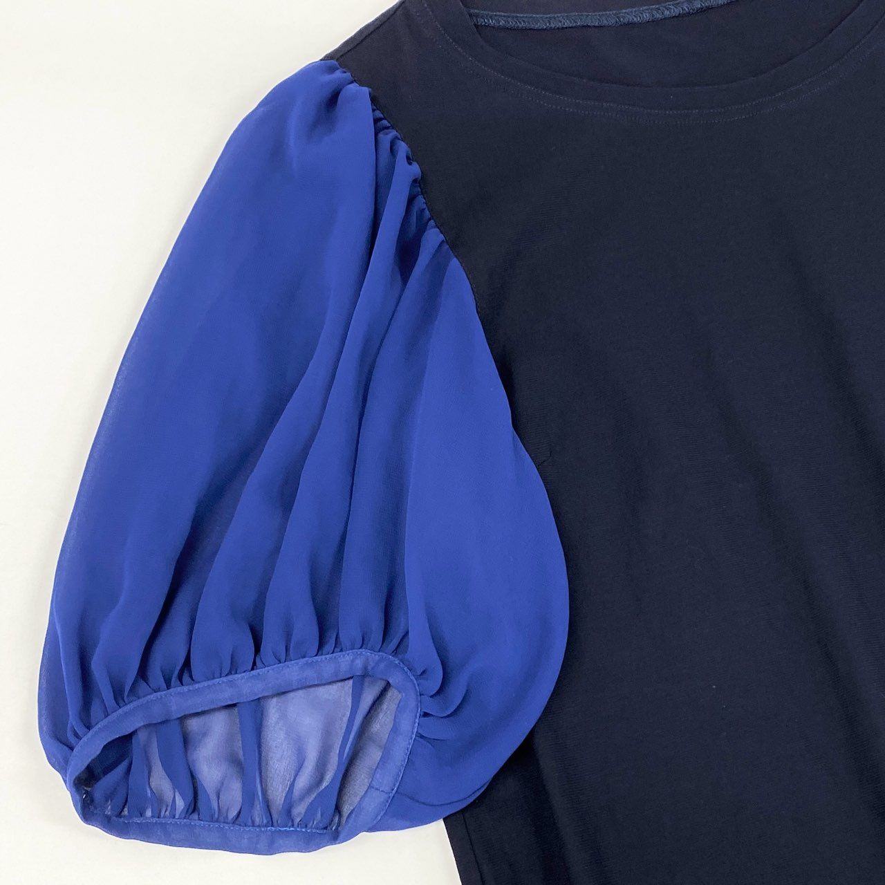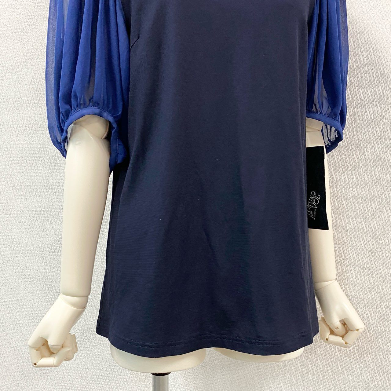 71h3《未使用保管品》タグ付 TOKUKO 1er Vol トクコプルミエヴォル 日本製 シフォン素材切替 パフスリーブ 半袖カットソー 9 Mサイズ ネイビー レディースo07t