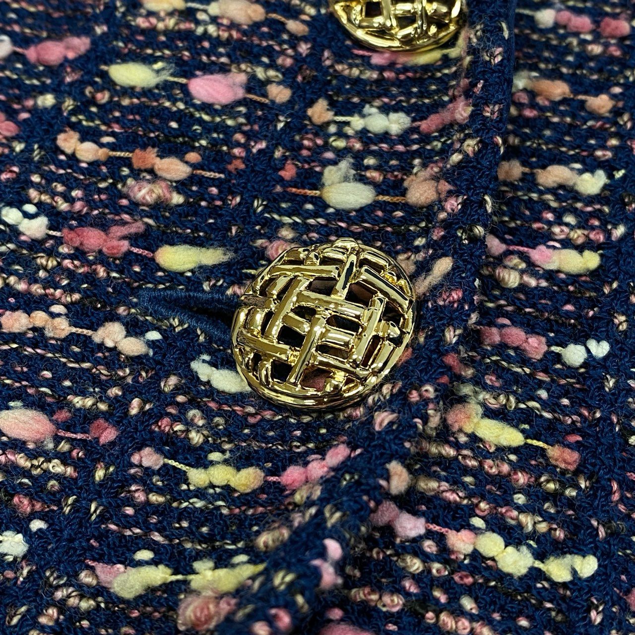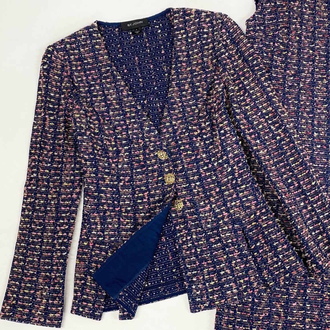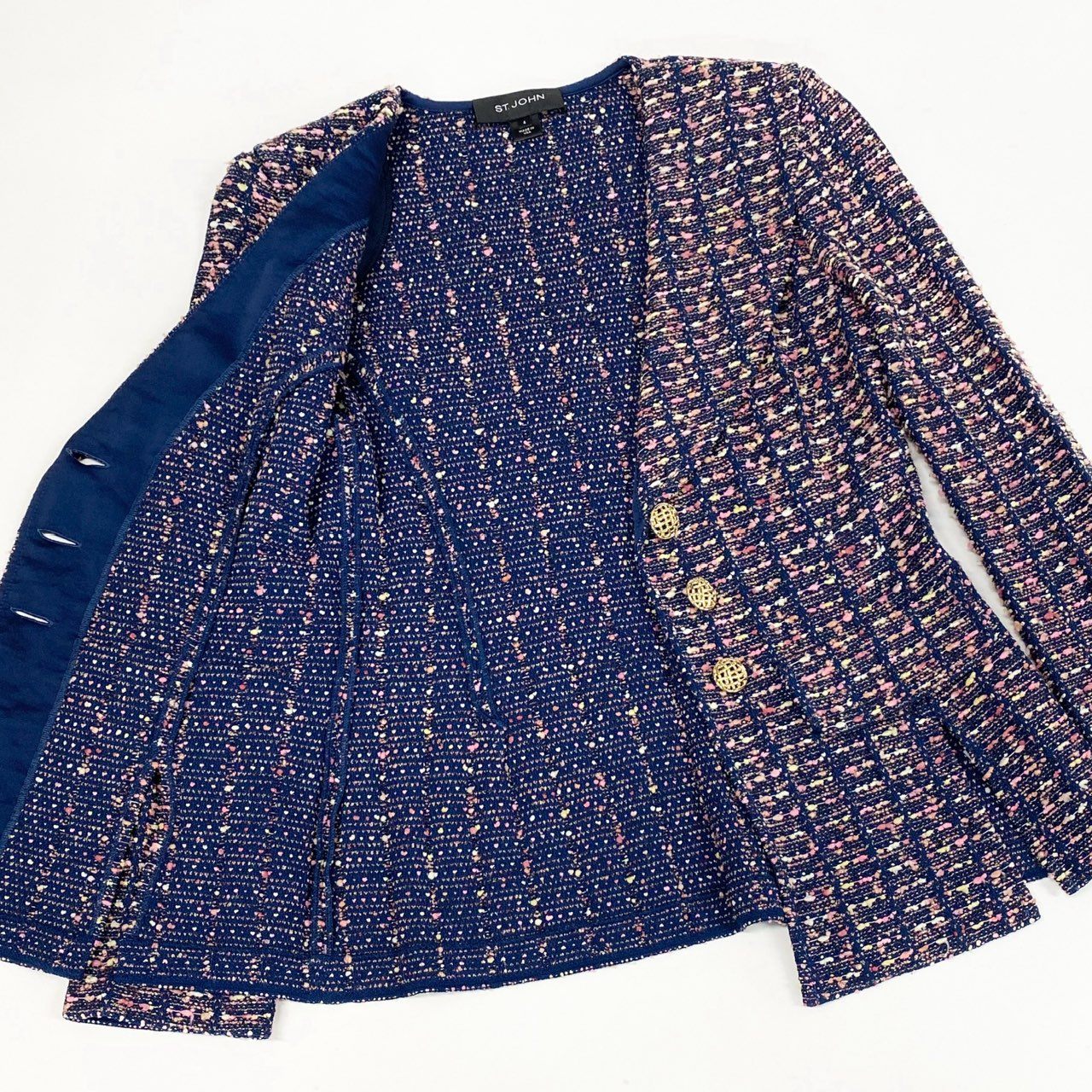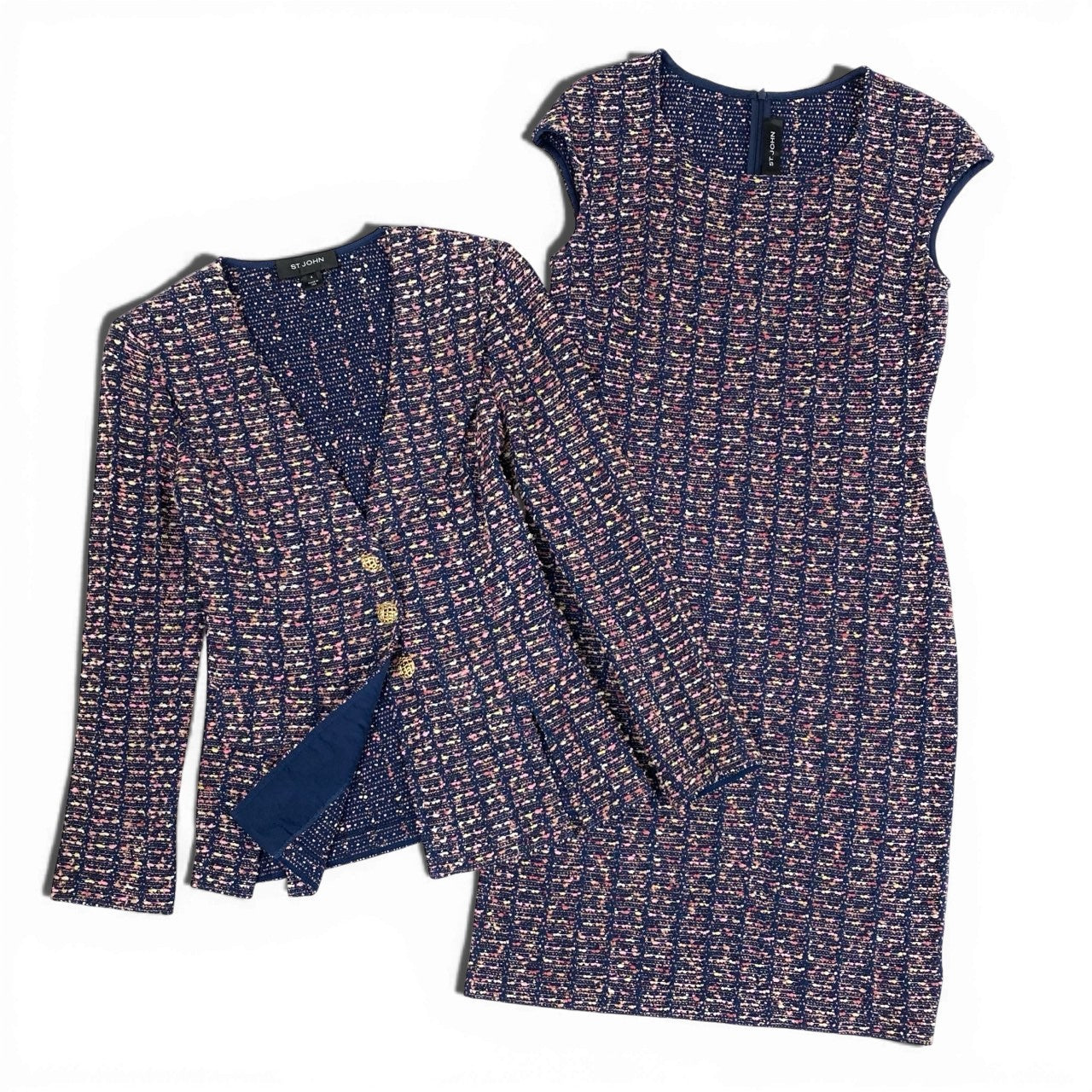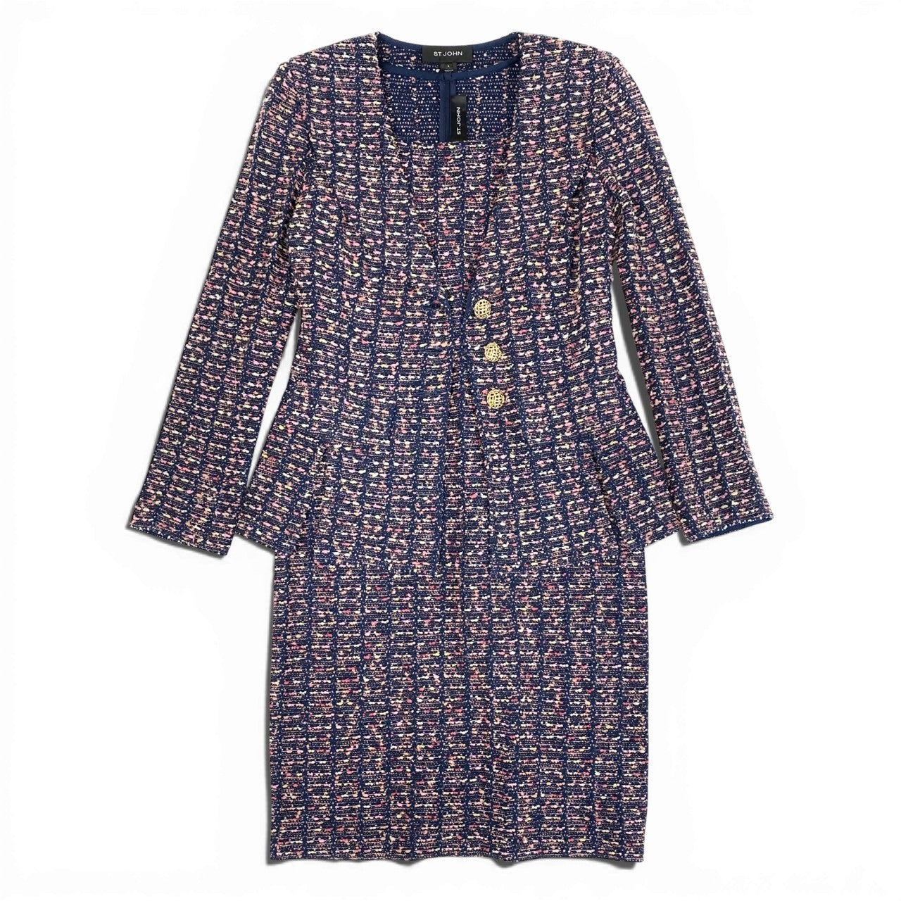 36a7 ST.JOHN セントジョン ワンピース ジャケット セットアップ アンサンブル 金ボタン ツイード 4 XLサイズ ネイビー ピンク系 レディースo07t