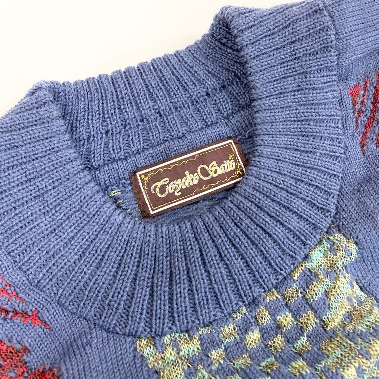 29i30 TOYOKO SAITO サイトウトヨコ 斎藤都世子 ニットワンピース 長袖ワンピース 総柄 セーター ブルー系 マルチカラー レディースo07t