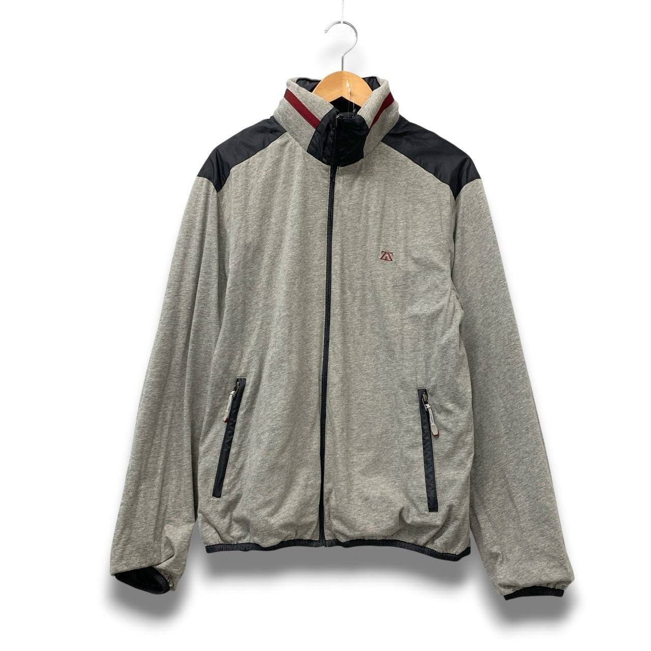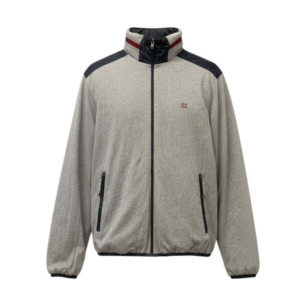 77b26 ZegnaSport ゼニアスポーツ リバーシブルジャケット ブルゾン 3Way フード収納 Lサイズ グレー ナイロン100% コットン100% メンズ 男性用u02t