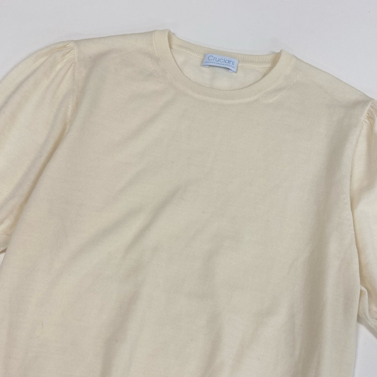 2j27 Cruciani クルチアーニ 半袖ニット ニットセーター クルーネック 薄手 ウール100% 40サイズ アイボリー レディースu02t