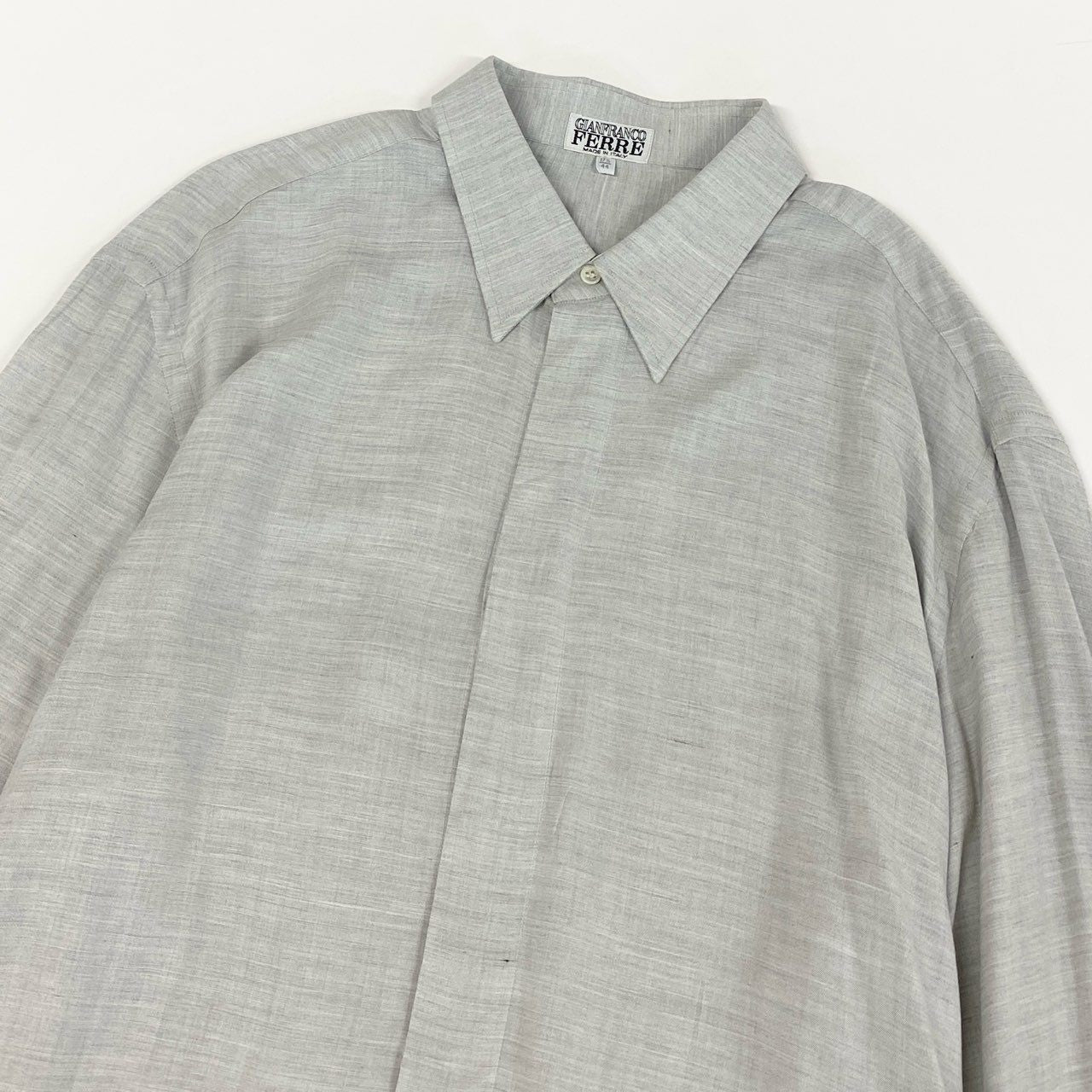 31i8 イタリア製 GIANFRANCO FERRE ジャンフランコフェレ レーヨンシャツ 長袖シャツ オーバーサイズ テロテロ生地 44 ライトグレー レーヨン 90s~00s old vintageu02t