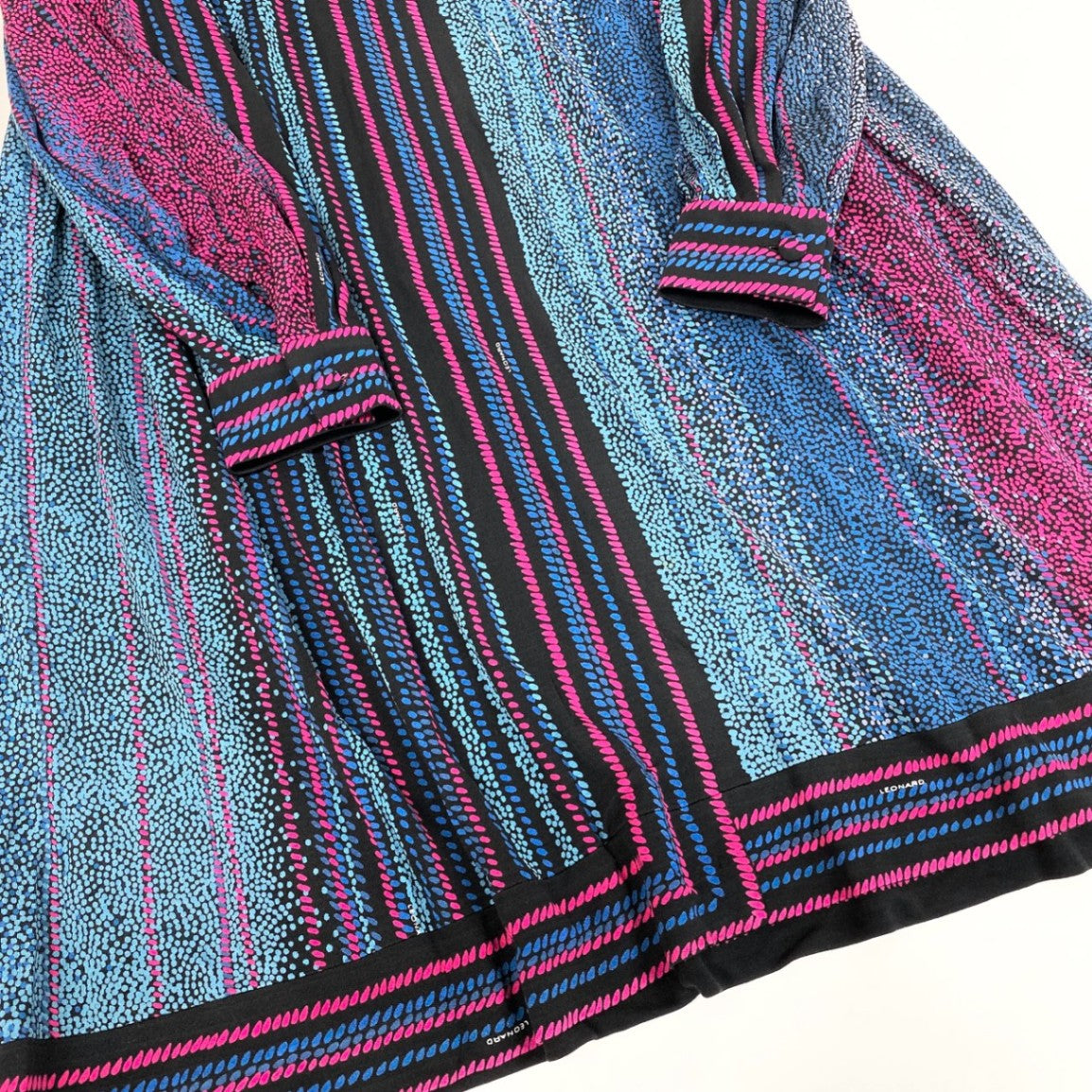 31b11【美品】LEONARD レオナール ロングスリーブワンピース ウエストベルト 総柄 1サイズ マルチカラー シルク100% レディース 女性用u02t