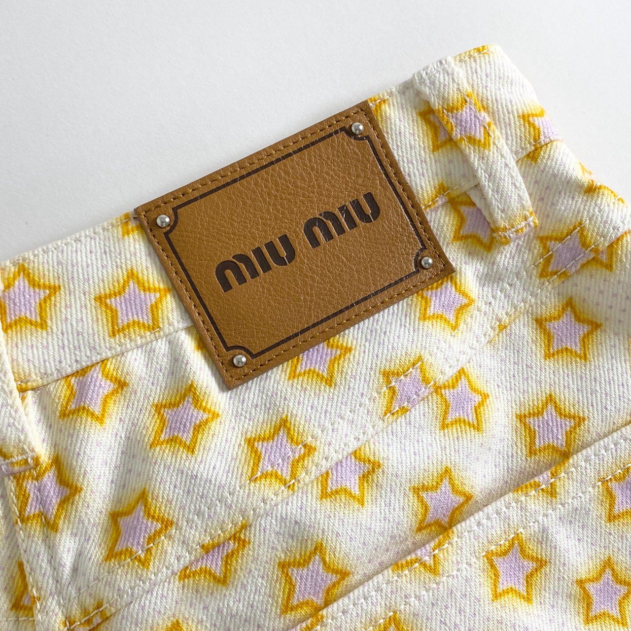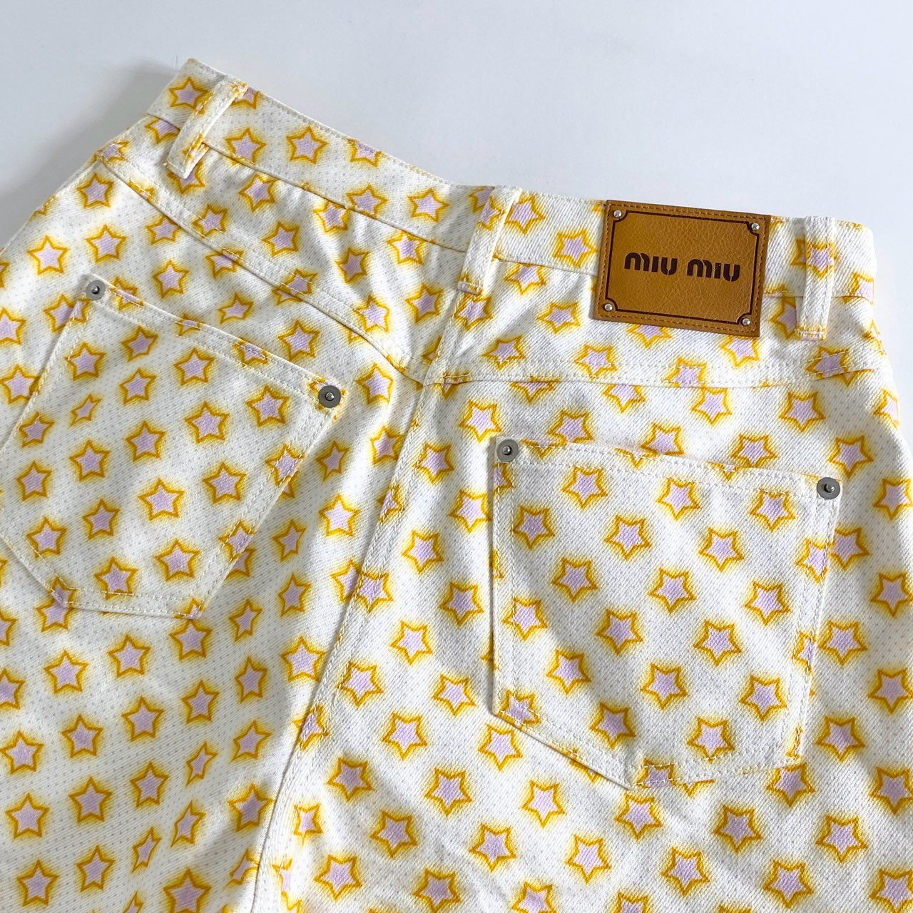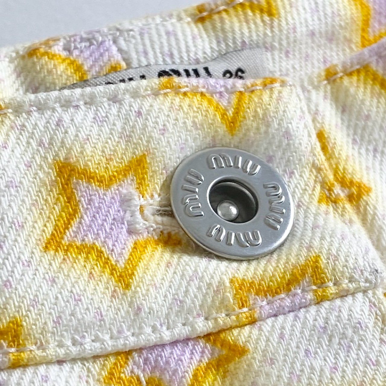 3b26 《美品》 イタリア製 miumiu ミュウミュウ ショートパンツ 36 イエロー系 星柄 スター ドット コットンパンツ ボトムス レディース