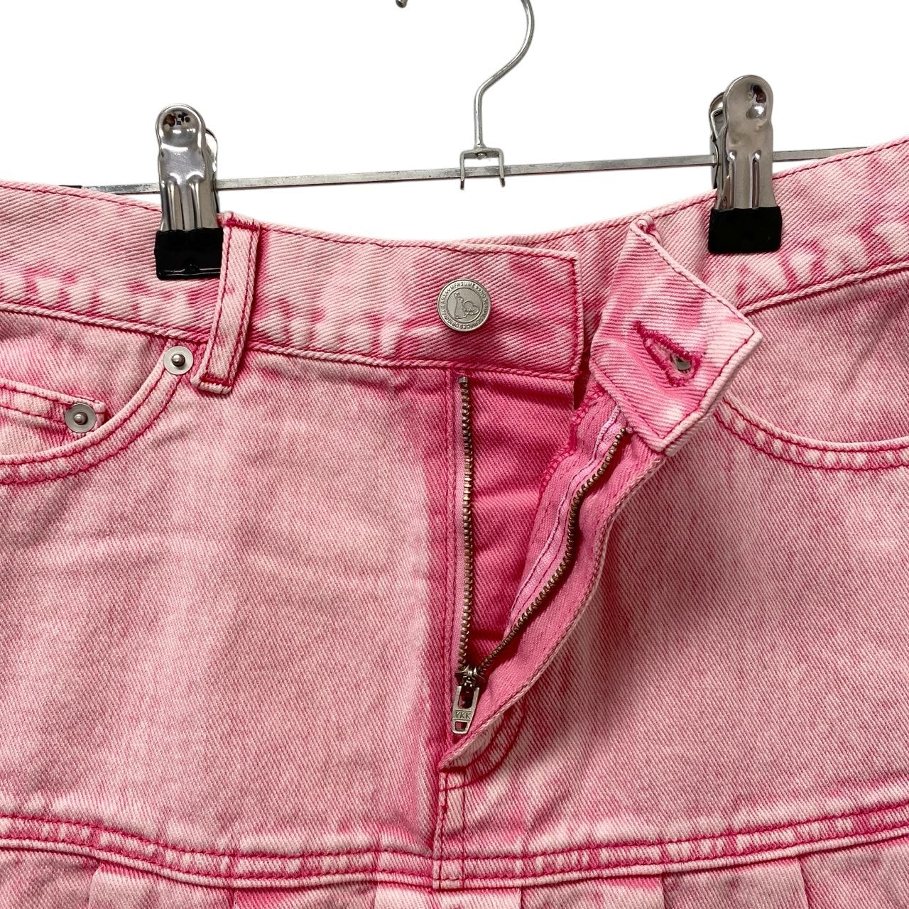 45c6 #FR2 エフアールツー デニムミニスカート プリーツスカート Mサイズ ピンク コットン100% レディース 女性用u02t