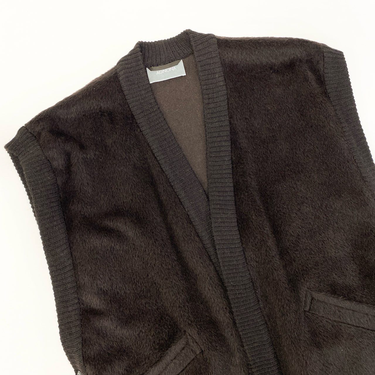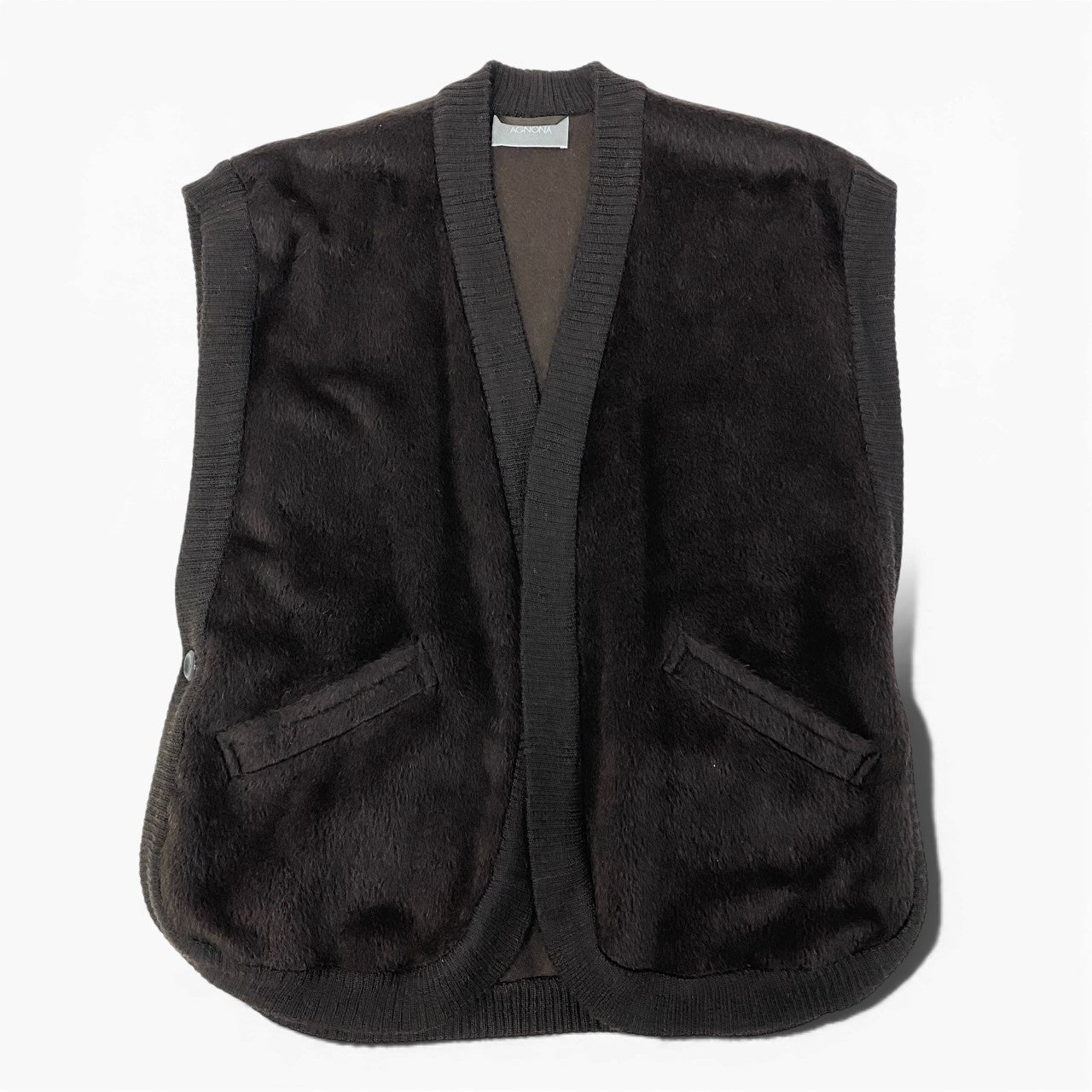 9a19 AGNONA アニオナ MARTORA アルパカウール ベスト サイズ44 ブラウン ALPACA イタリア製t18r