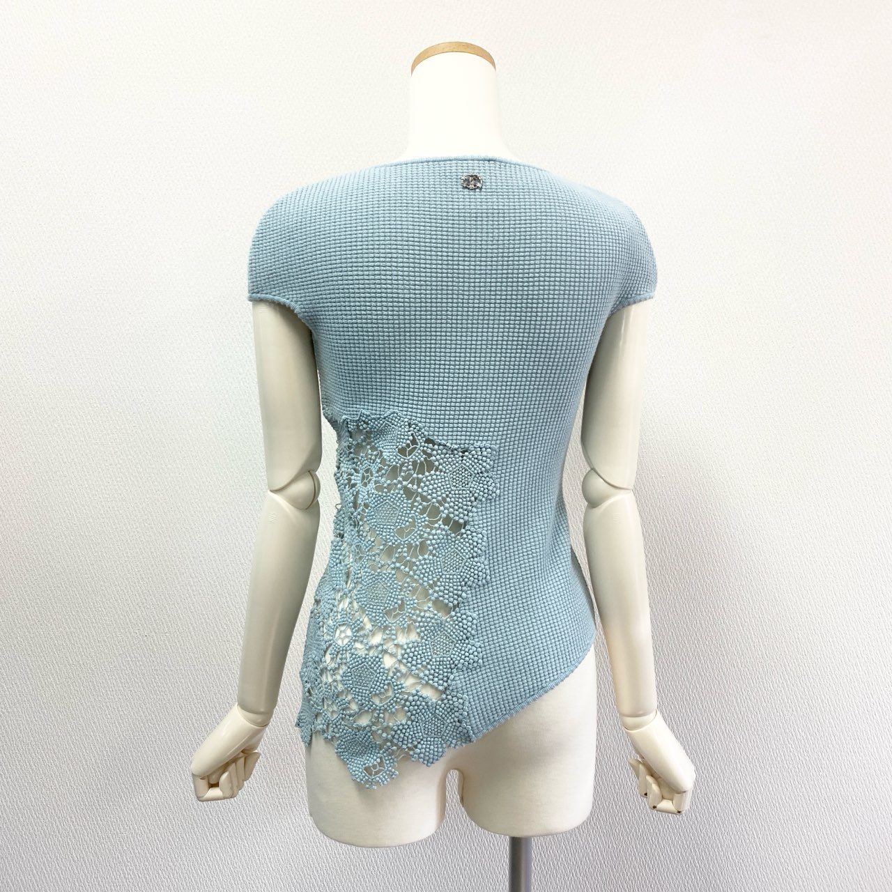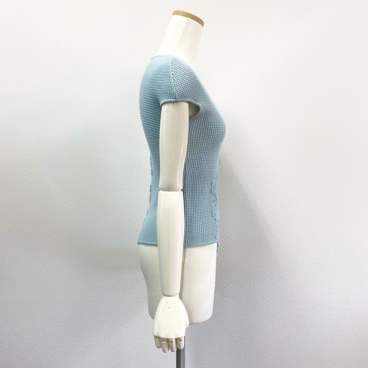 15K18 【美品】CHANEL シャネル 2014SS レース切替 ワッフルカットソー P41341K03047 サイズ34 ブルー系 レディース 女性用 トップスk02i