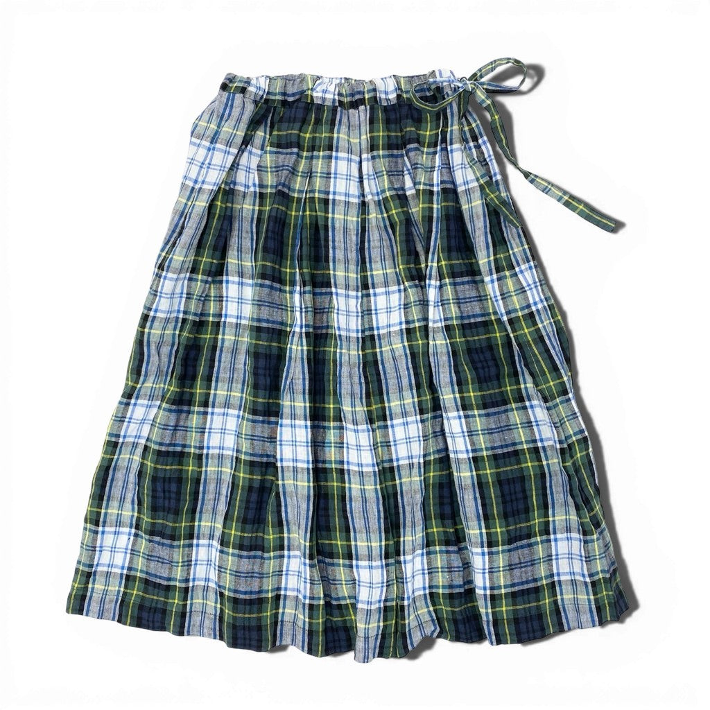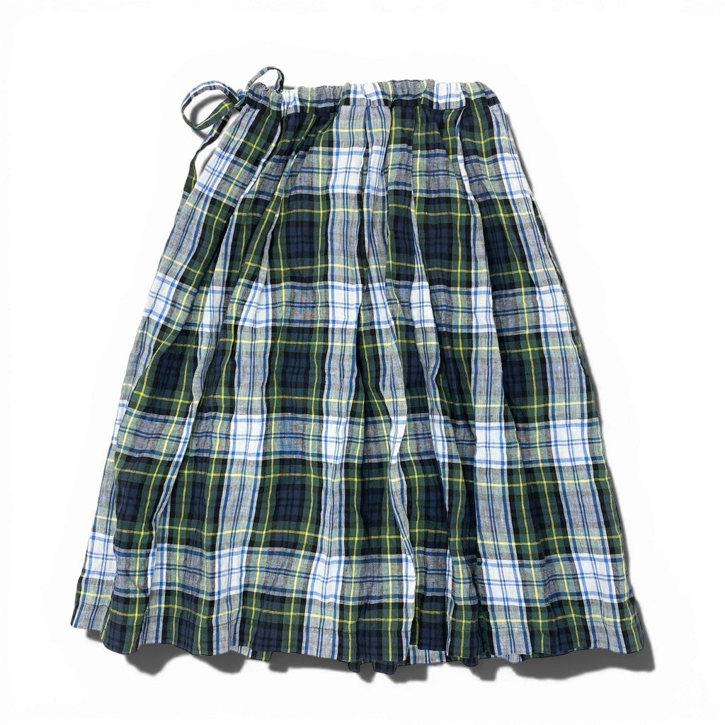 グリーン・ネイビー・ホワイトを基調としたタータンチェック柄が印象的なロングスカートです。素材はナチュラルな風合いのリネンで、軽やかさと通気性を兼ね備えています。ウエストはギャザー+紐付きのデザインで、体型に合わせて調整可能なのも魅力。オニールオブダブリンらしい伝統的な雰囲気に、Bshop別注ならではの洗練された配色が日常使いからリゾート、旅行シーンまで幅広く活躍します。