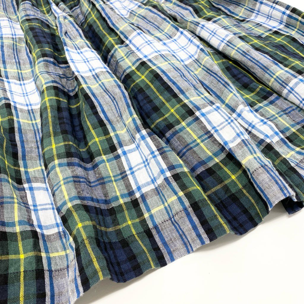 1a8 《美品》 O’NEIL OF DUBLIN オニールオブダブリン Bshop別注 アイルランド製 ロングスカート チェックスカート 8 グリーン系 リネン レディース 女性用u02t