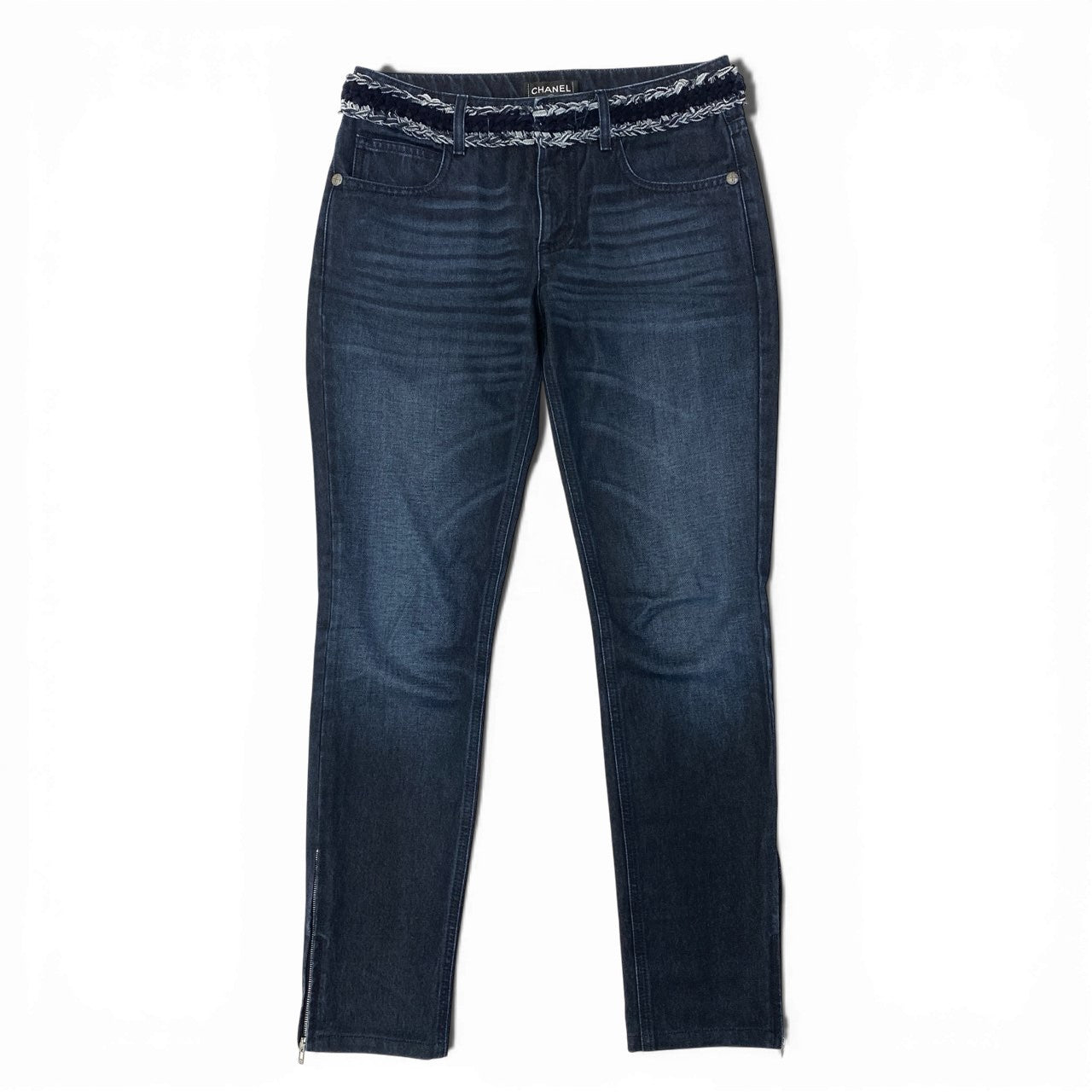 76a28 CHANEL シャネル P52309 2016 編み込みデザイン 裾ジップ付き デニムパンツ ジーンズ ボトム サイズ36 インディゴ レディース パンツta1