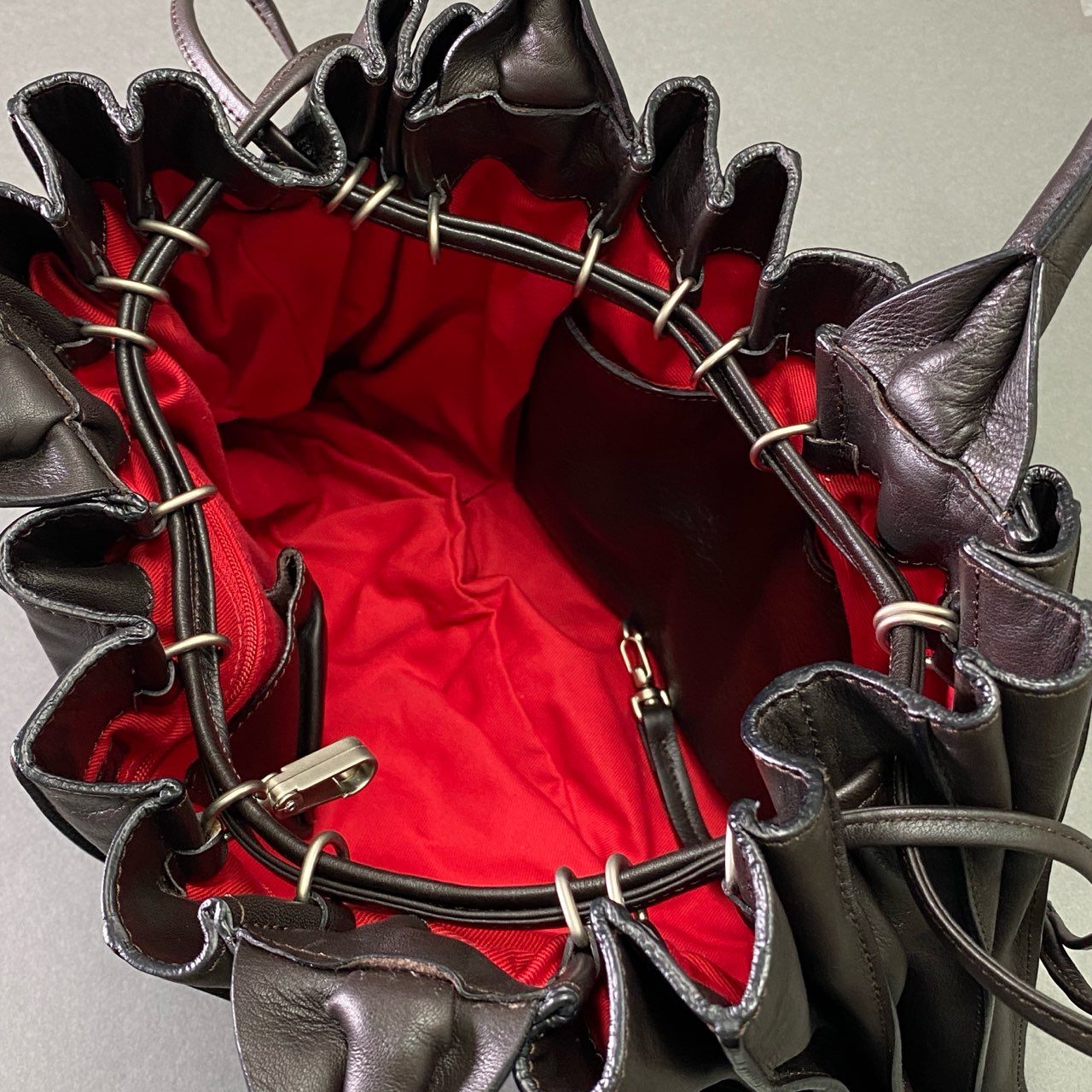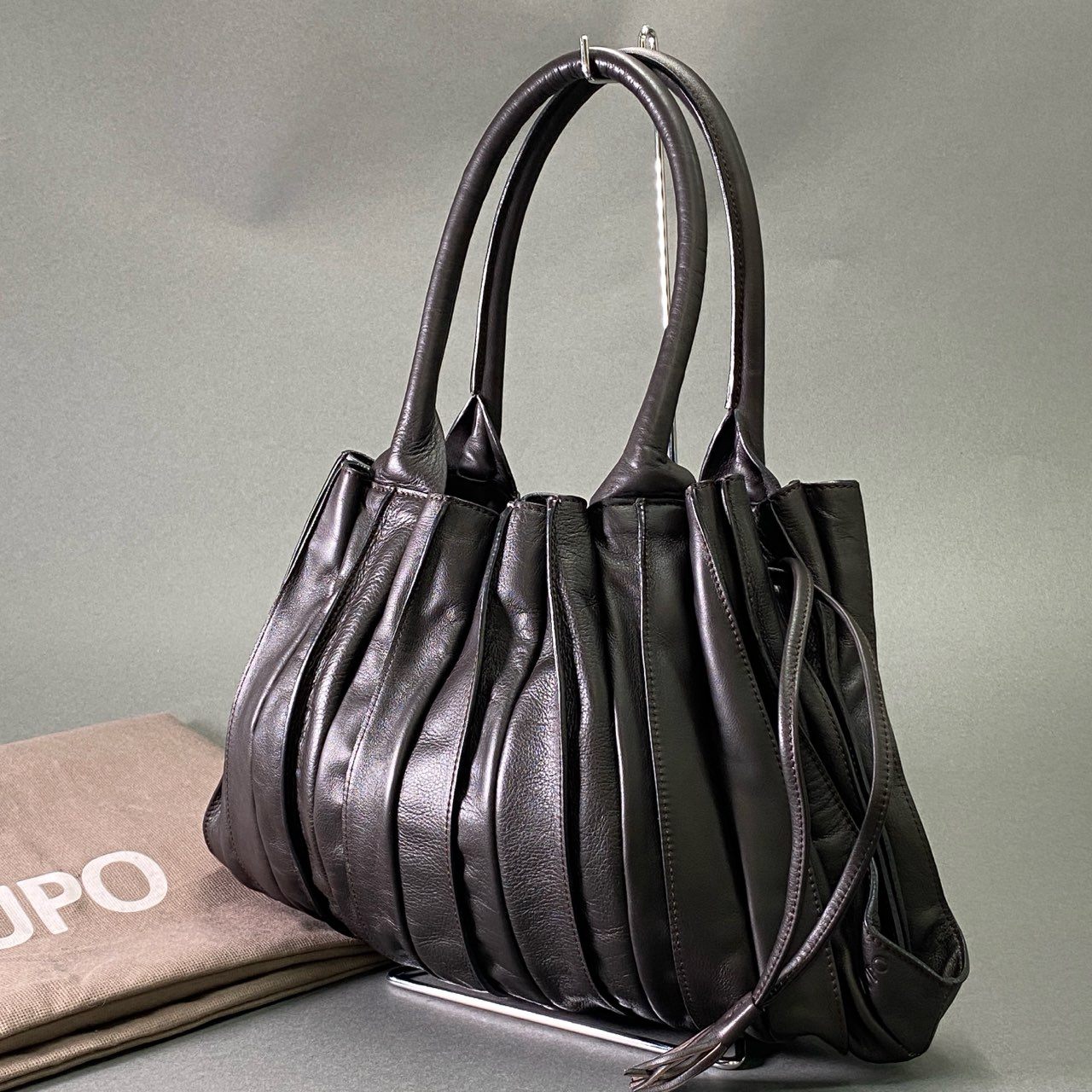 Ae19 LUPO ルポ 蛇腹 じゃばらデザイン レザートートバッグ ハンドバッグ ブラウン レザー スペインブランド レディース 女性用 鞄
