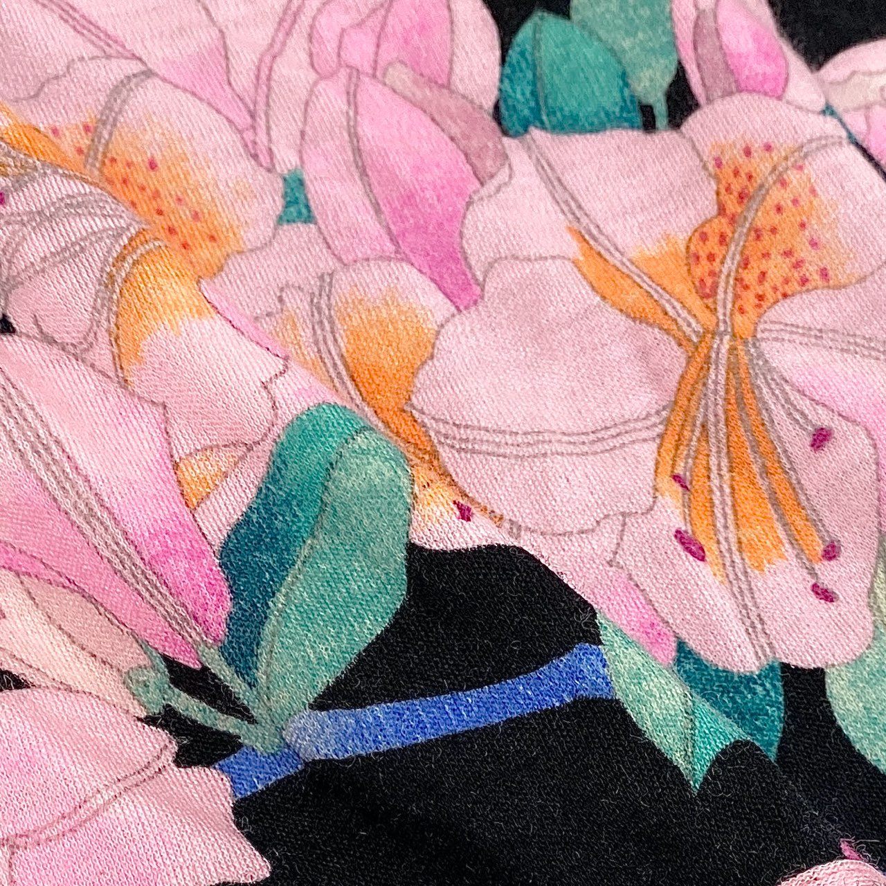58f20 LEONARD PARIS レオナール 花柄プリント ハイネック長袖ワンピース バックジップ ロングスリーブ ドレス イタリア製 36 ブラック ウール ナイロン レディース