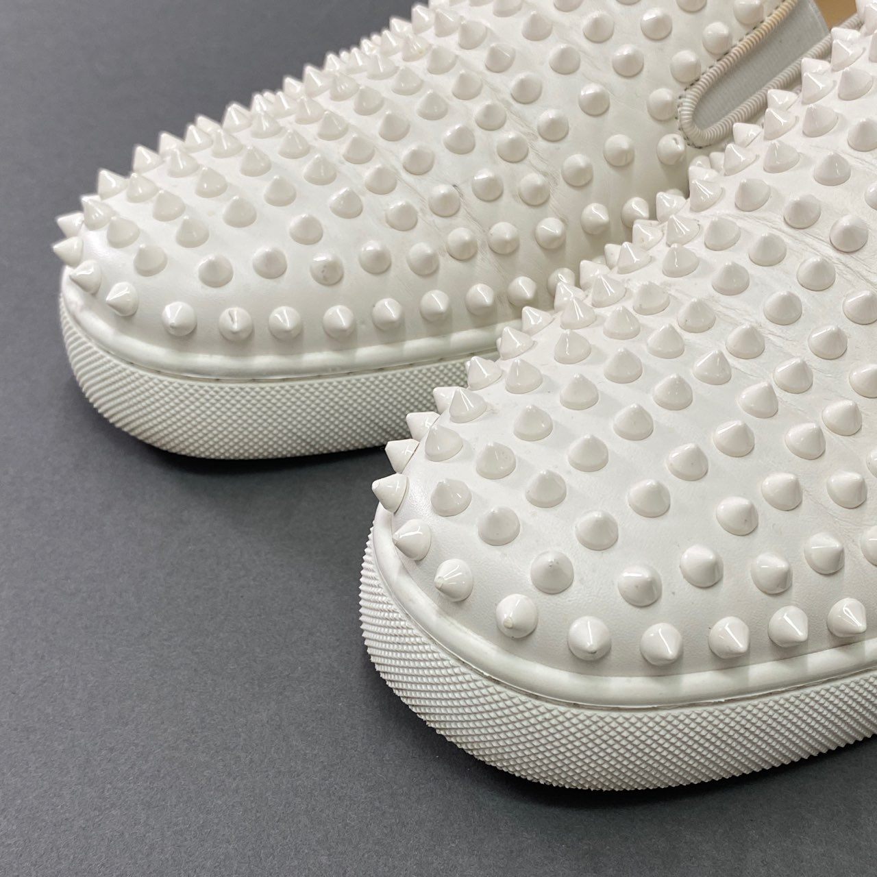 7l20 Christian Louboutin クリスチャンルブタン ローラーボート スパイク スリッポン スニーカー 41 1/2 ホワイト レザー イタリア製 シューズ ロックスタッズ