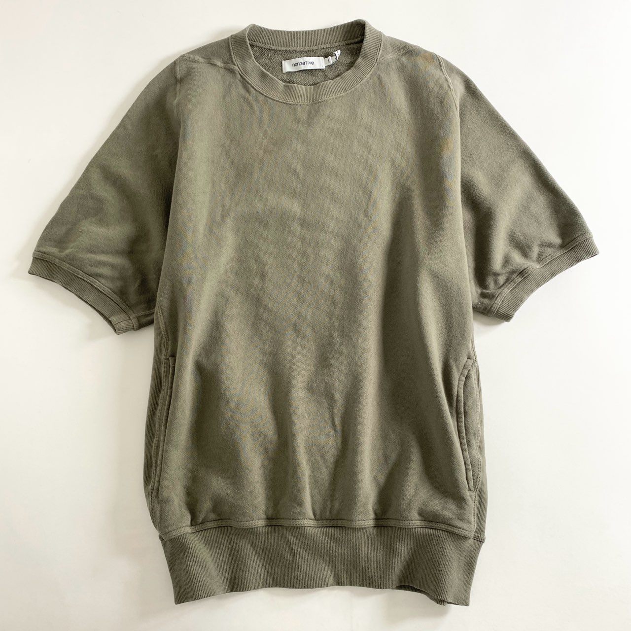 34b26 日本製 nonnative ノンネイティブ 半袖スウェット カットソー 1 カーキ 無地 サイドリブ サイドポケット トップス
