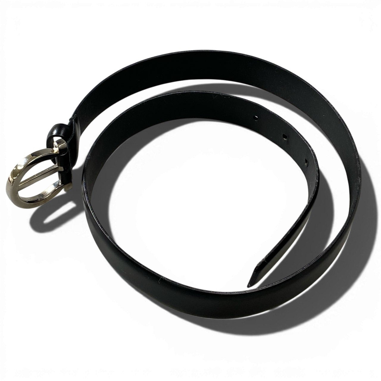 **Salvatore Ferragamo**の洗練されたデザインが光るメンズベルト。 マットなブラックレザーに、シルバートーンのメタルバックルを組み合わせた上品で落ち着いた一本です。 無地デザインながら、バックルの立体感が程よい存在感を演出します。 スーツスタイルやオフィスカジュアルはもちろん、きれいめな休日コーデにも取り入れやすい万能アイテムです。