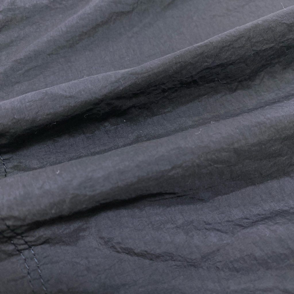 深みのあるマットブラックが都会的な印象の、ドローズリング仕様ワイドパンツです。無地デザインに、自然なシワ感のある軽量素材が特徴で、落ち着いた表情と快適さを両立。ゴムウエスト+ドローコードにより着脱が容易で、長時間の着用でも快適です。ミニマルな見た目で、カジュアルからモード寄りのコーディネート、旅行やワンマイルウェアにも活躍します。