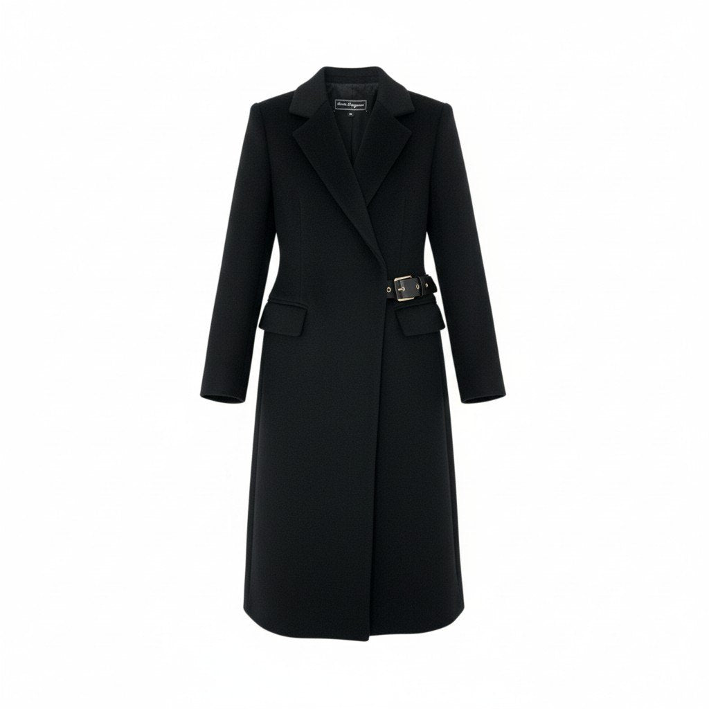 深く美しいブラックが際立つ、Salvatore Ferragamo のカシミア100%チェスターコートです。カシミア特有のしなやかな光沢と滑らかな肌触りがあり、着るだけで品格を引き上げる高級アウター。ウエストにはレザーベルトディテールを備え、フェラガモらしい上質感とモード感を両立したデザインが魅力です。ロング丈のためスタイルが美しく決まり、通勤・フォーマル・特別なお出かけにも最適。長く愛用できるタイムレスな一着です。