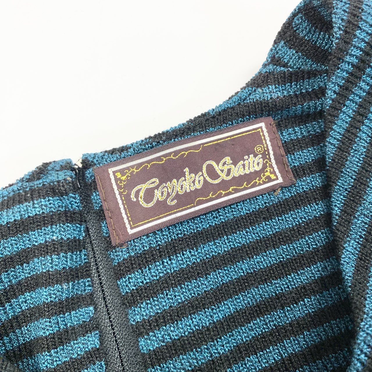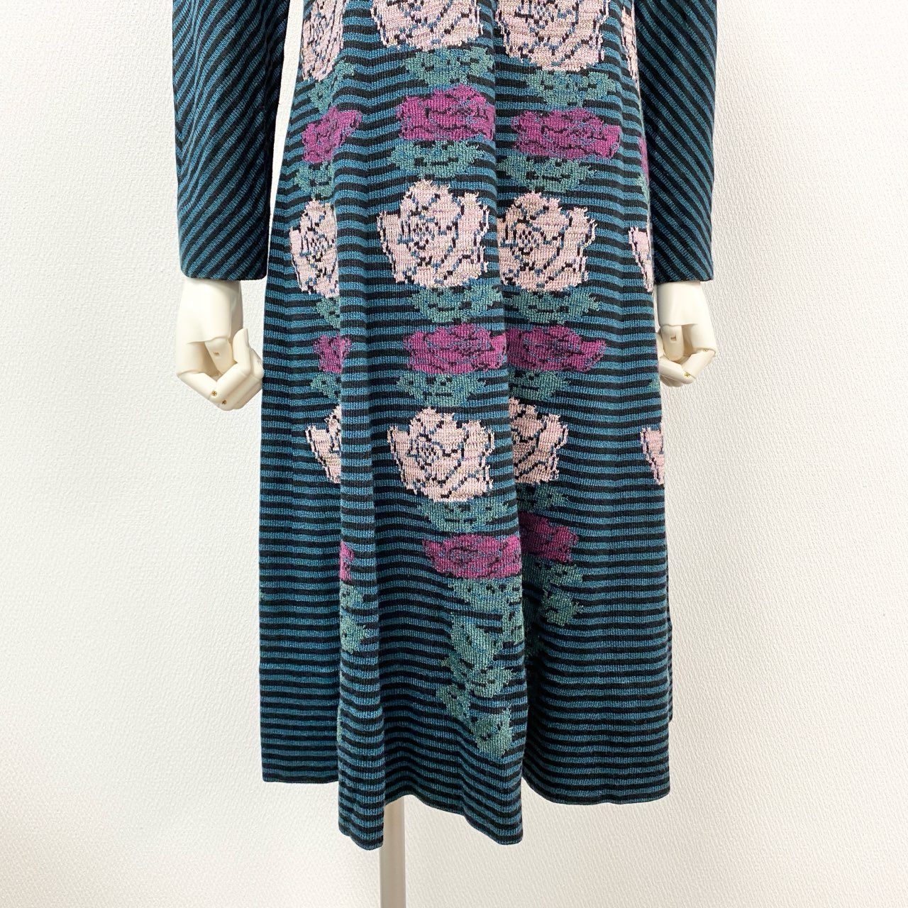 30i30 TOYOKO SAITO サイトウトヨコ 斎藤都世子 ニットワンピース フレアワンピース ボーダー 花柄 マルチカラー レディースo07t