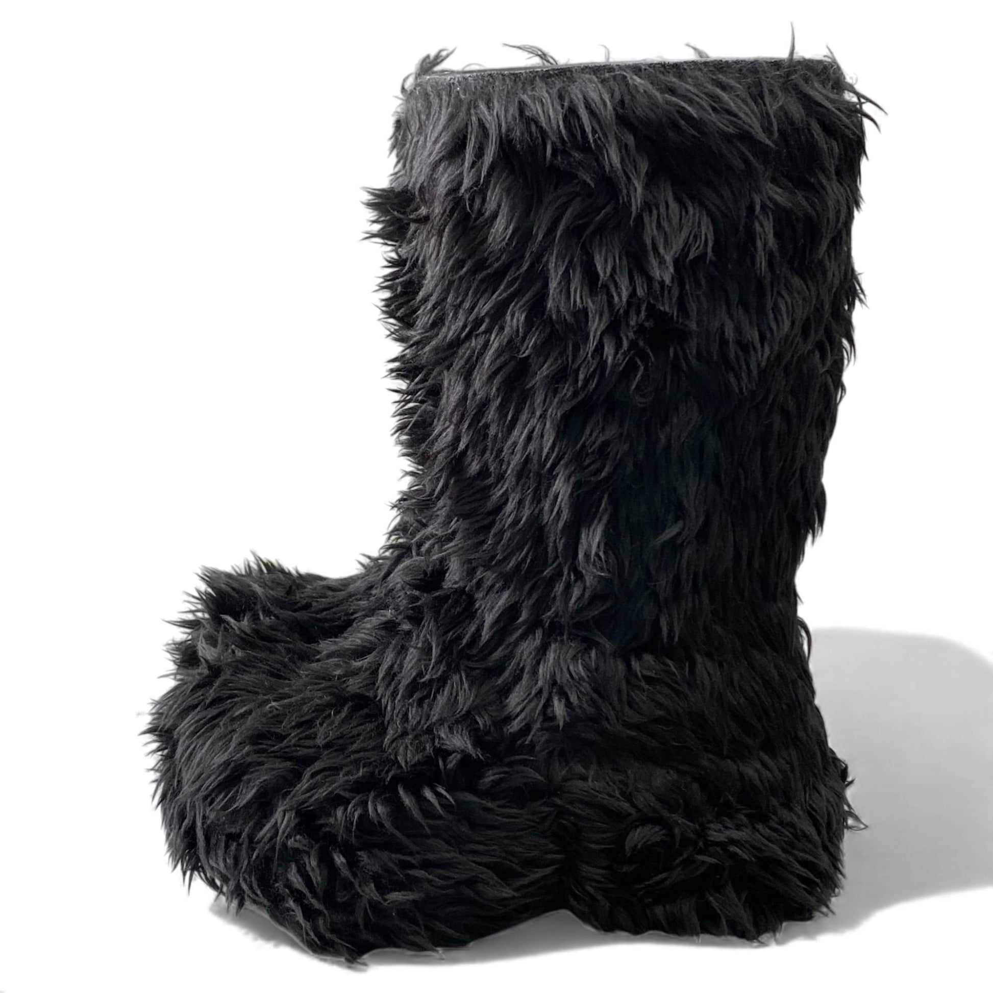 カラーは深みのあるブラックで、全体を覆うロングファー調のフェイクファーが強い存在感を放つバレンシアガらしいハイファッションブーツです。立体的に揺れる毛足がシルエットを美しく見せ、コーディネートの主役級アイテムとして活躍。軽量のフェイクファーを使用しており、防寒性とファッション性を兼ね備えています。2025SSモデルらしいモード感が際立ち、ランウェイのようなスタイリングにも相性抜群。個性的な一足をお探しの方におすすめのアイテムです。