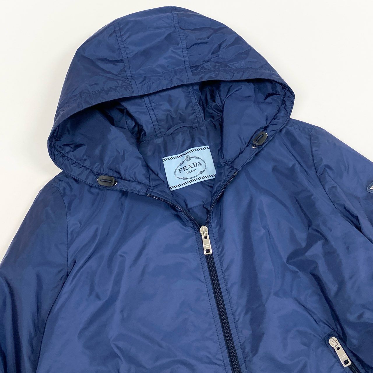 30l14 PRADA プラダ Re-Nylon フーデッドジップジャケット 三角プレート 29Q597 サイズ40 ブルー ブルゾン パーカーt18r
