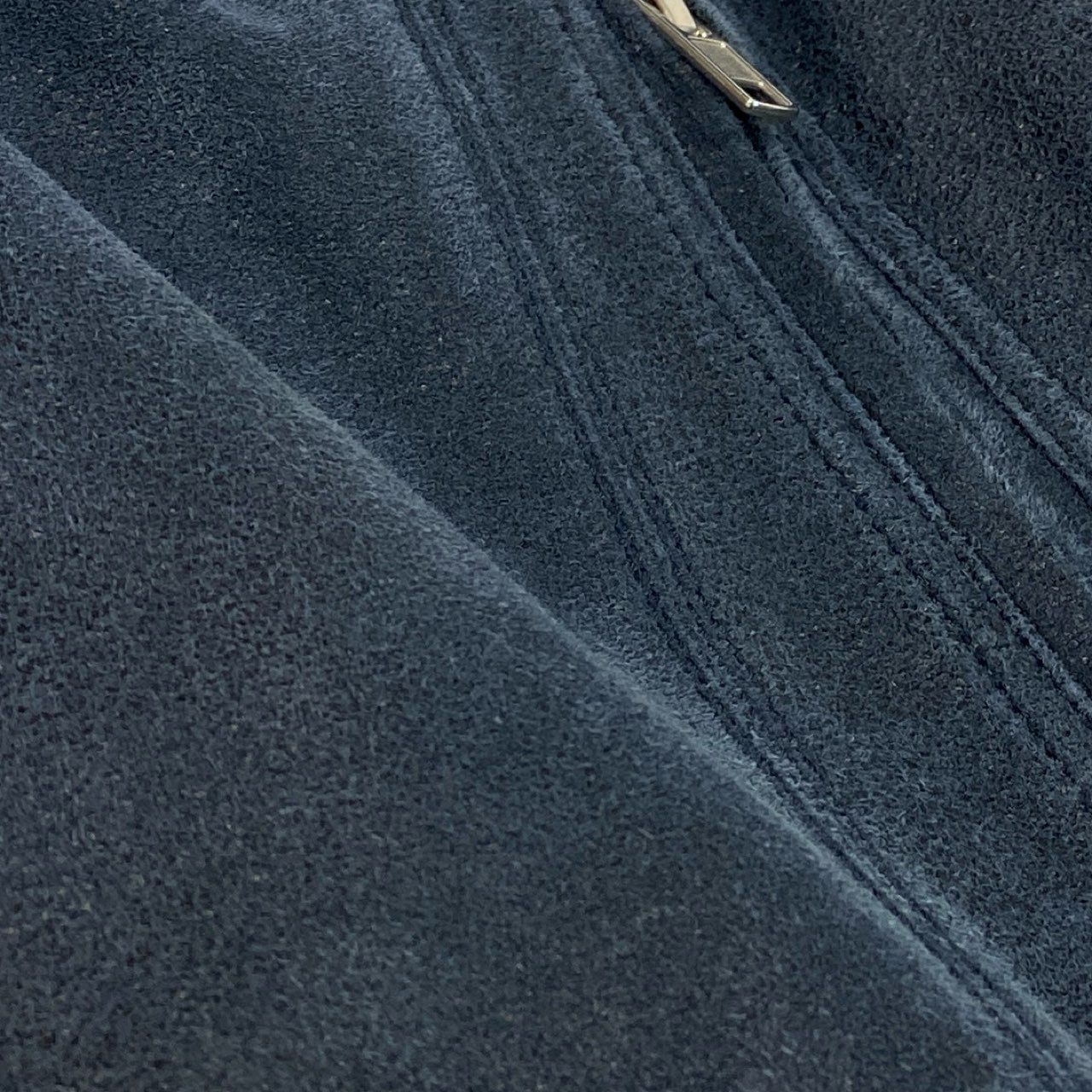 深みのあるミッドナイトネイビーのレザーを使用した、マットな質感のライダースジャケットです。毛足のない滑らかなスムースレザーに、立体的なハイネックとアシンメトリーポケットが印象的なデザイン。シルバージップがモードなアクセントになっています。短丈バランスとロングスリーブがリックオウエンスらしいシャープなシルエットを演出。モノトーンコーデに合わせるだけで存在感が際立つ一着です。