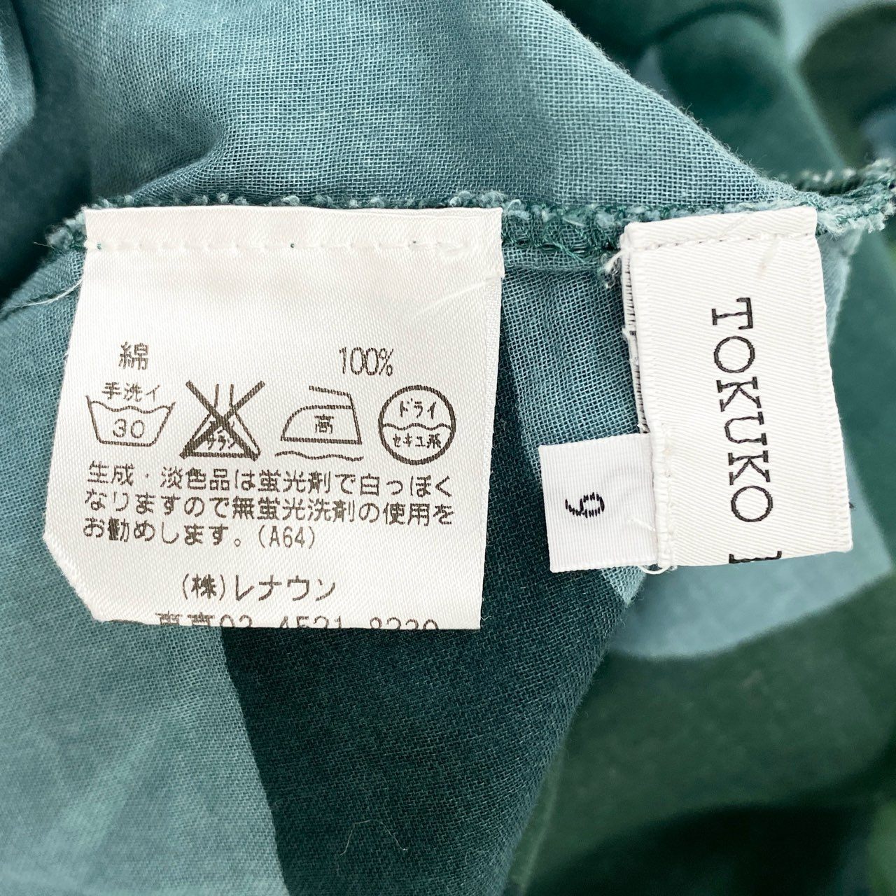 71i3 TOKUKO 1er Vol トクコプルミエヴォル 日本製 総柄プリント 五分袖チュニック ブラウス トップス 9 Mサイズ グリーン コットン レディースo07t