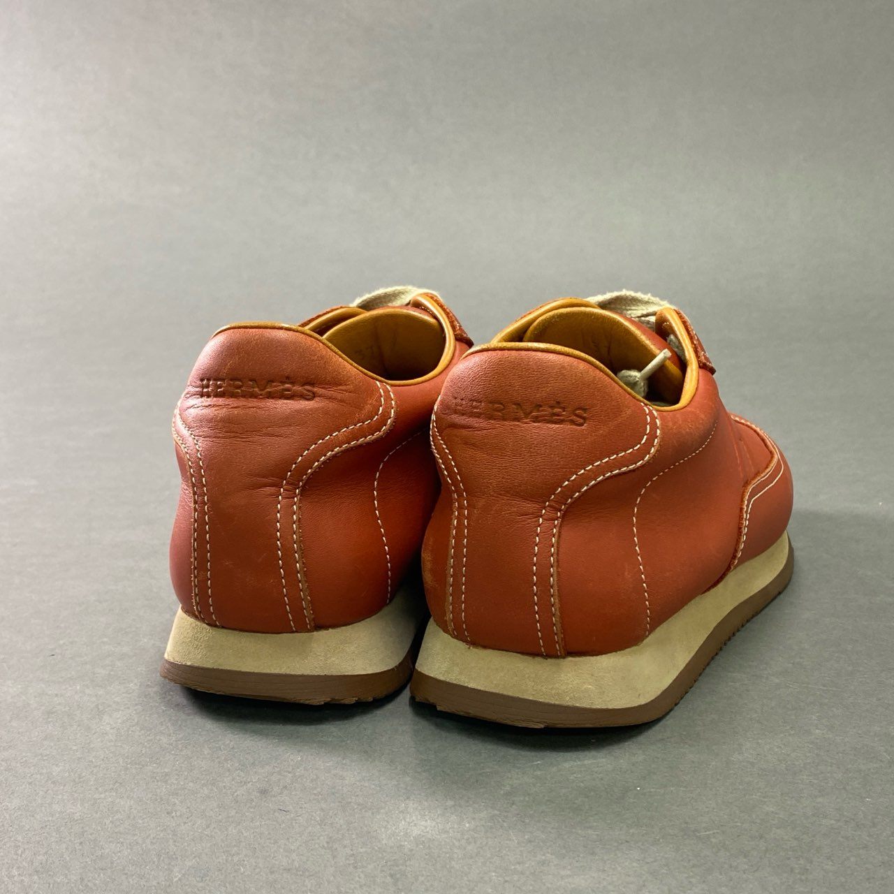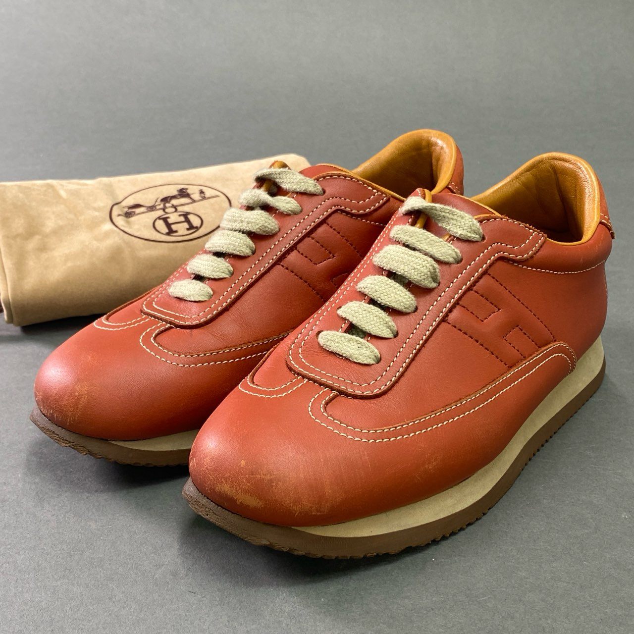 3b7 HERMES エルメス クイック ローカットスニーカー レザーシューズ Hロゴ レースアップ 保存袋付属 37 ブラウン系 本革