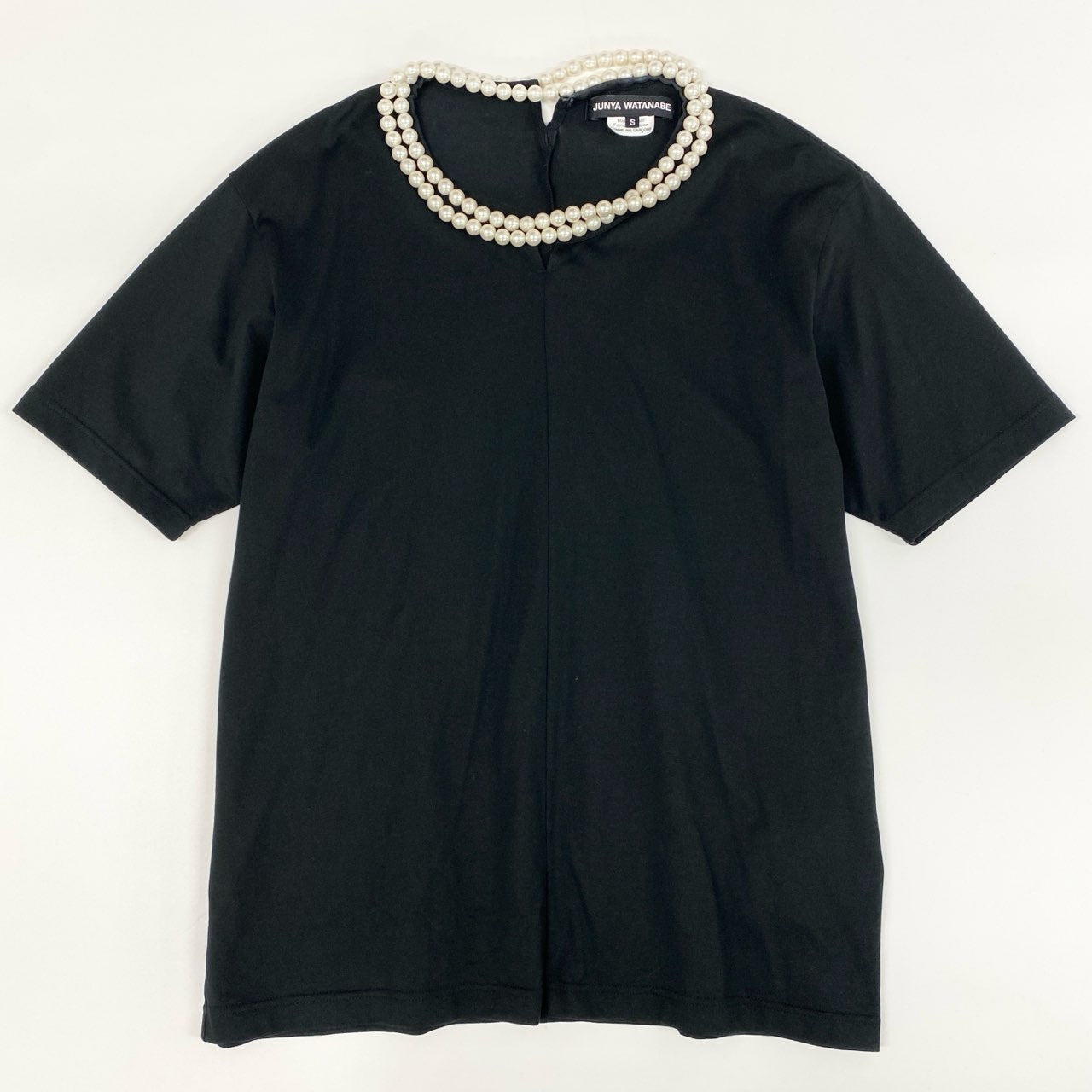 54g10 《美品》 JUNYA WATANABE ジュンヤワタナベ 23SS パールネックレス付 カットソー S ブラック Tシャツ 日本製 女性服