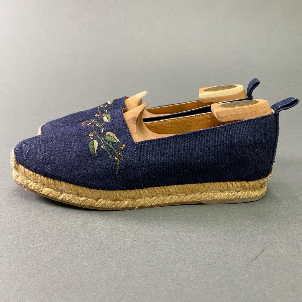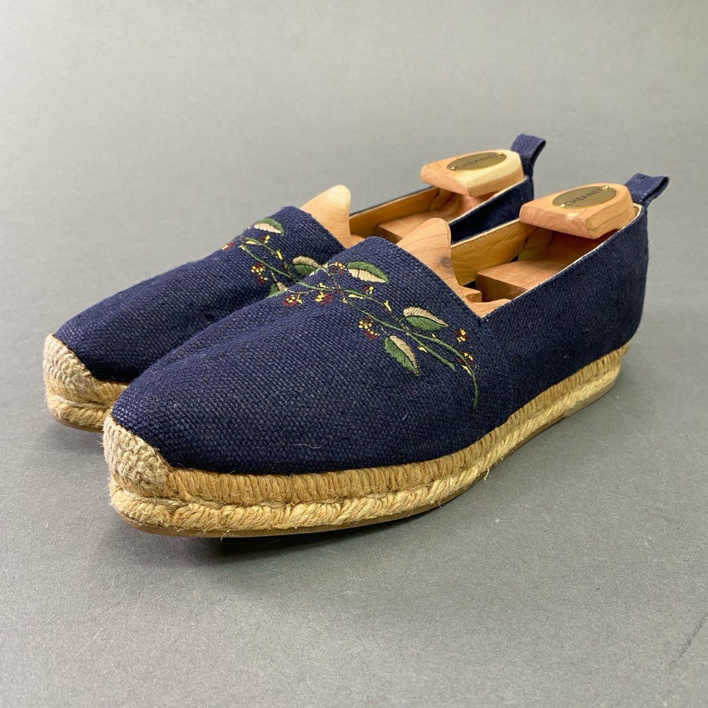 6d6 《美品》 HERMES エルメス 刺繍デザイン エスパドリーユ スリッポン 36 ネイビー キャンバス フラワー シューズ スペイン製 サンダル
