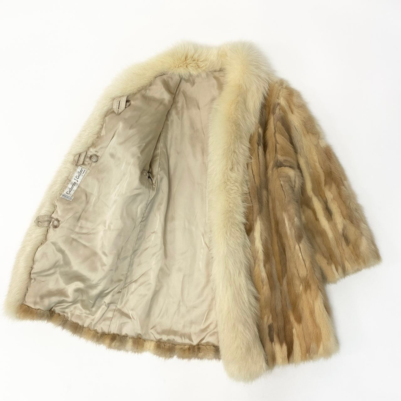 32d2 Catherine J.Guilbert フォックス×ミンク ファーコート 毛皮コートジャケット アウター アイボリー フォックス ミンク レディース 女性用k02i