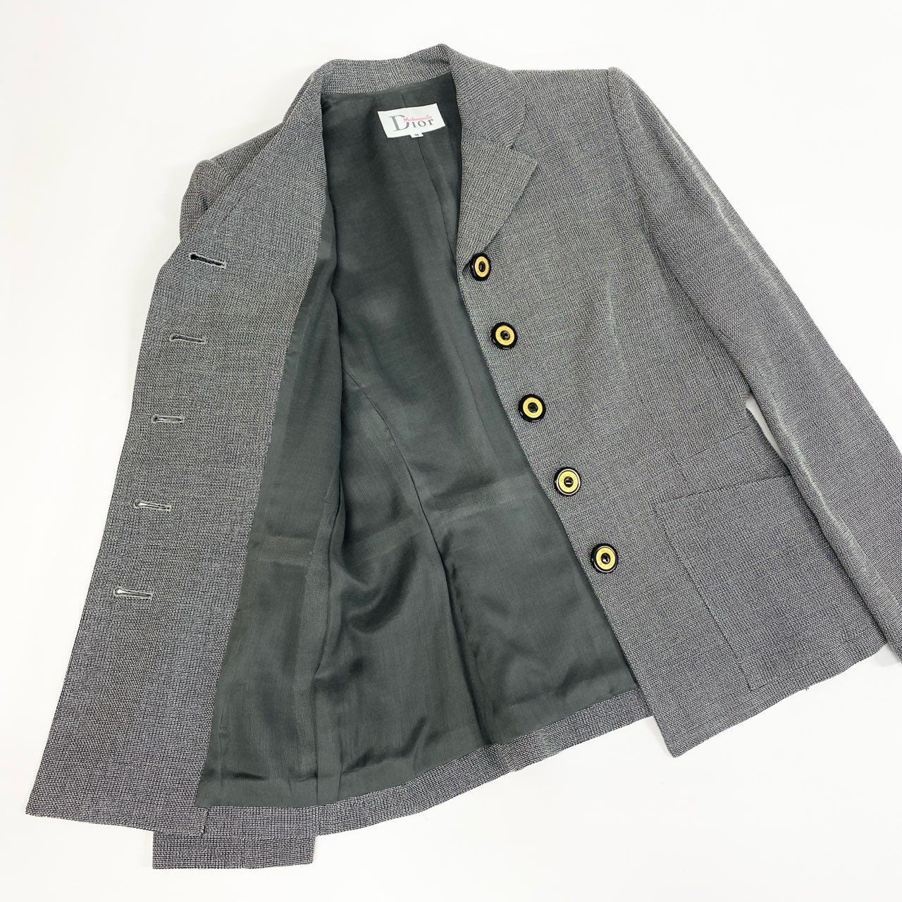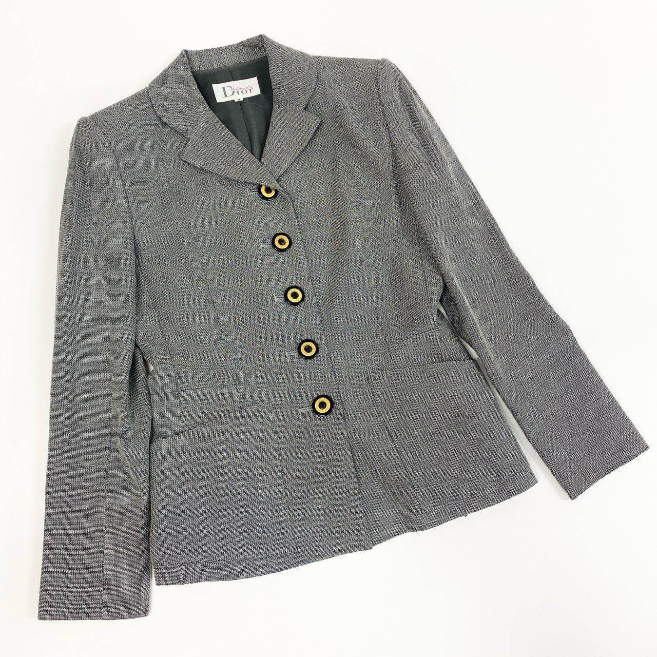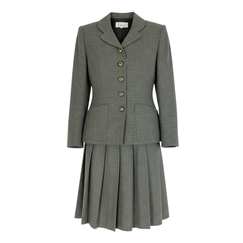 31b12 Mademoiselle Dior マドモアゼルディオール スカートセットアップ テーラードジャケット プリーツスカート Mサイズ グレー レディース 女性用u02t
