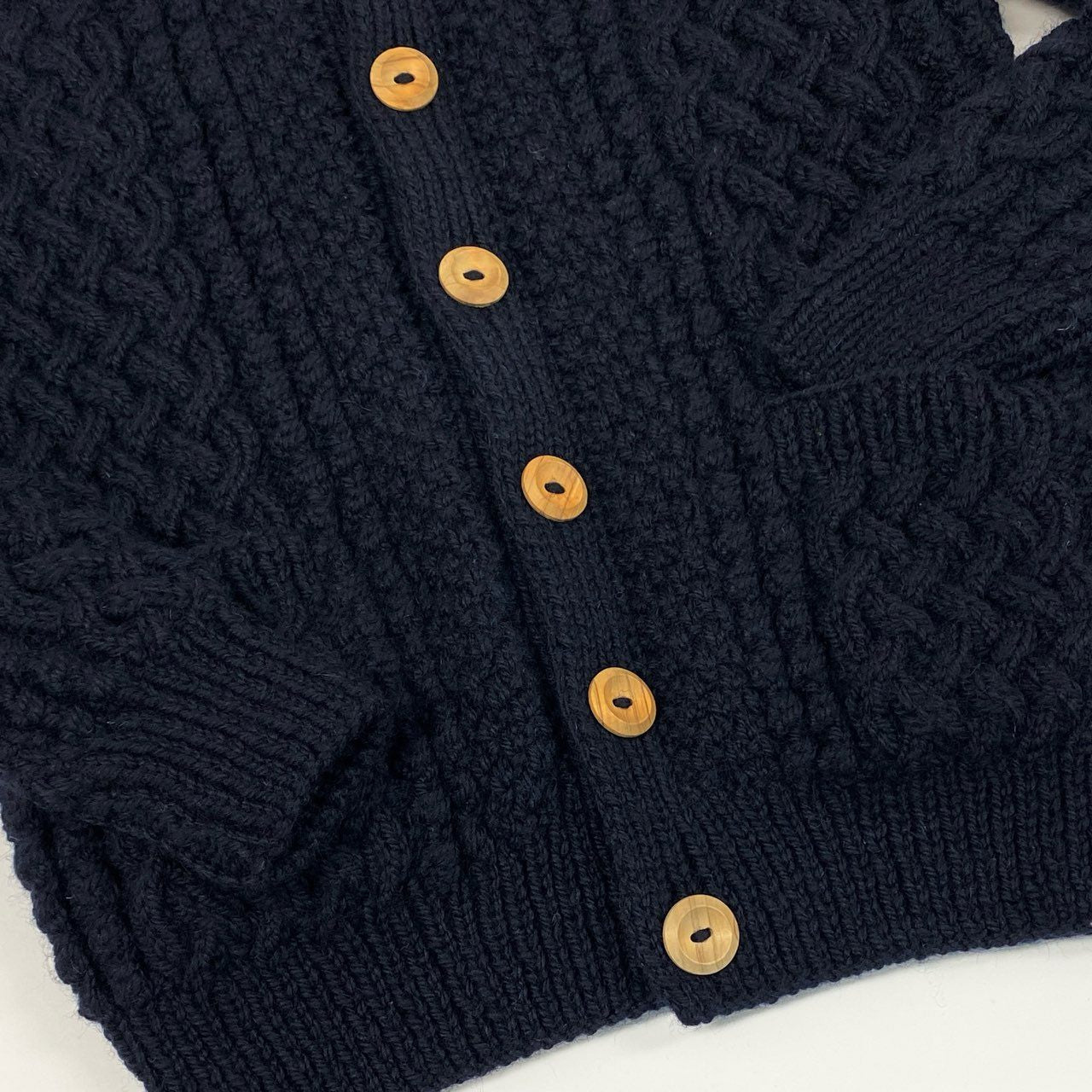 26g2 【スコットランド製】INVERALLAN インバーアラン 4Aモデル ノーカラー ニットカーディガン カウチン サイズ38 ネイビー ウール メンズ