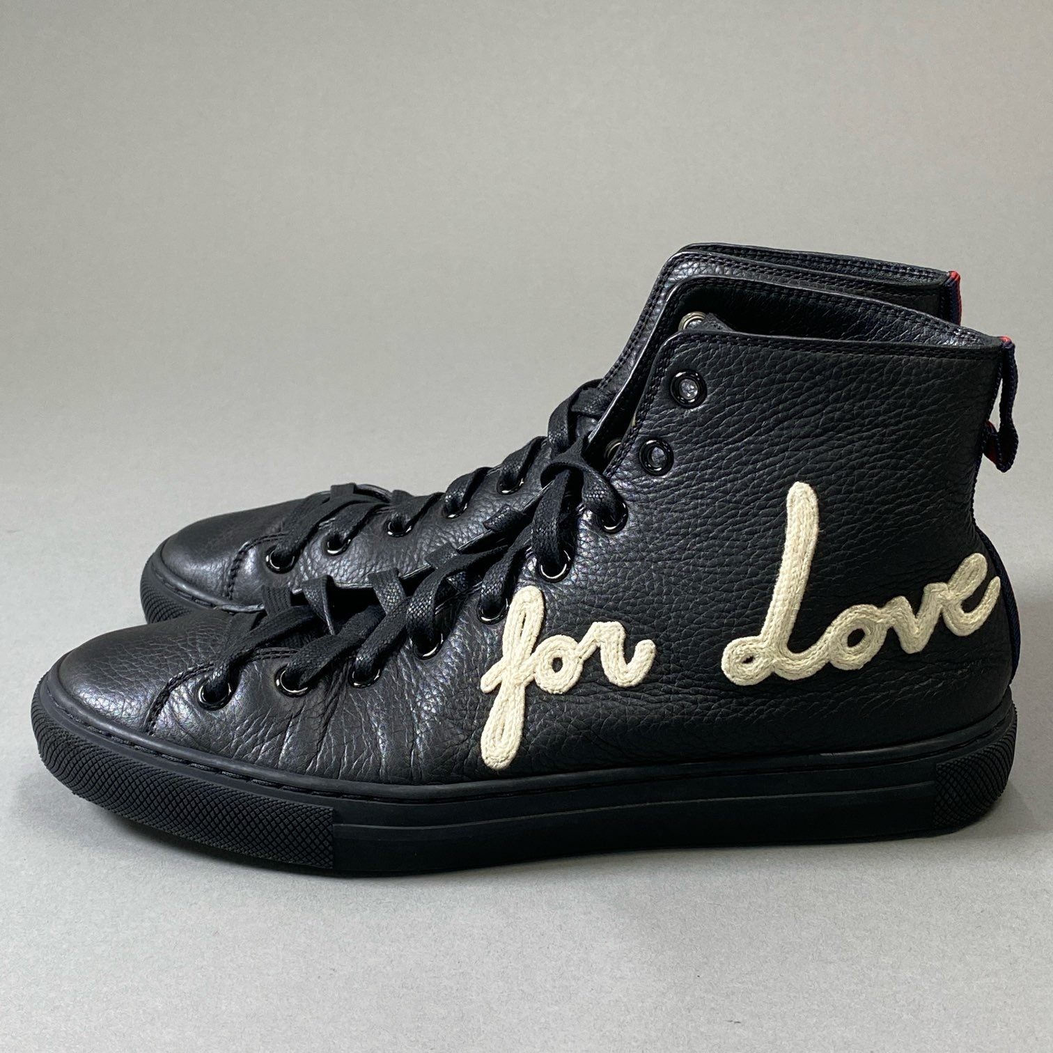 3i30 《美品》 GUCCI グッチ Blind for LOVE シュリーライン タイガーヘッド ハイカットスニーカー シューズ 449992 5サイズ ブラック カーフレザー メンズt18r