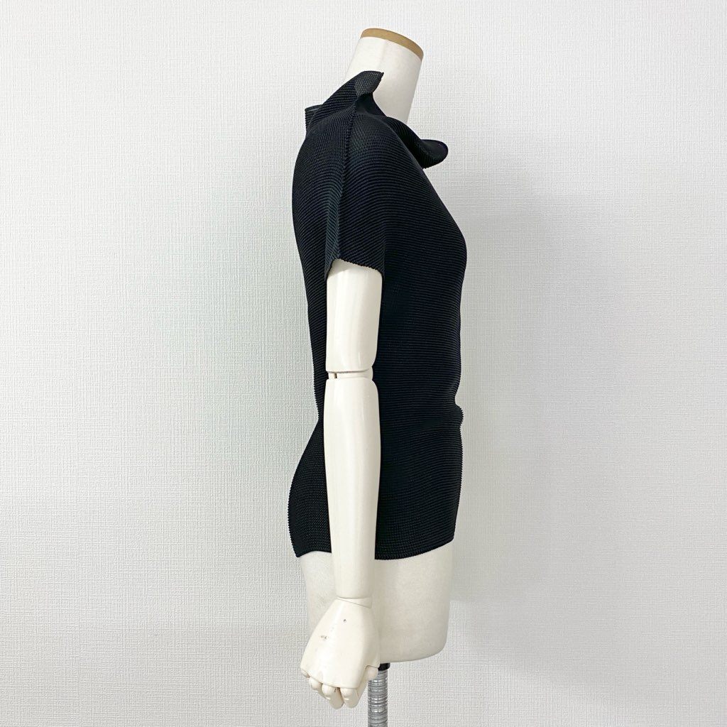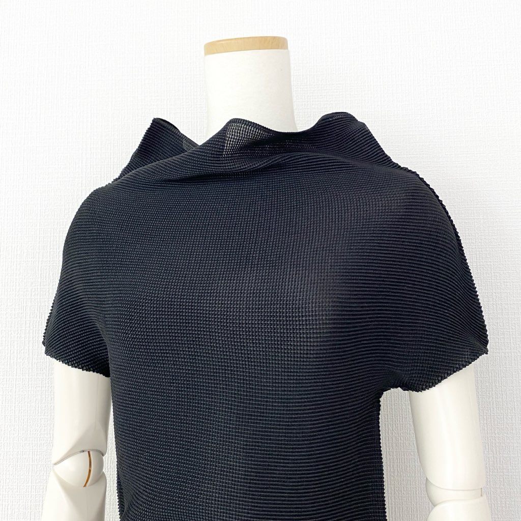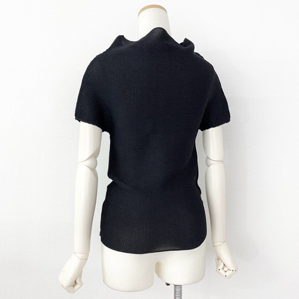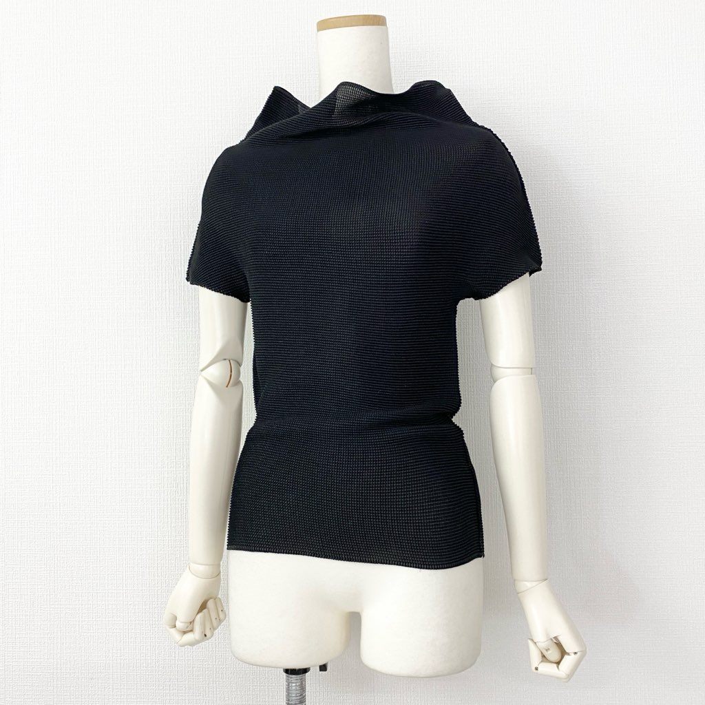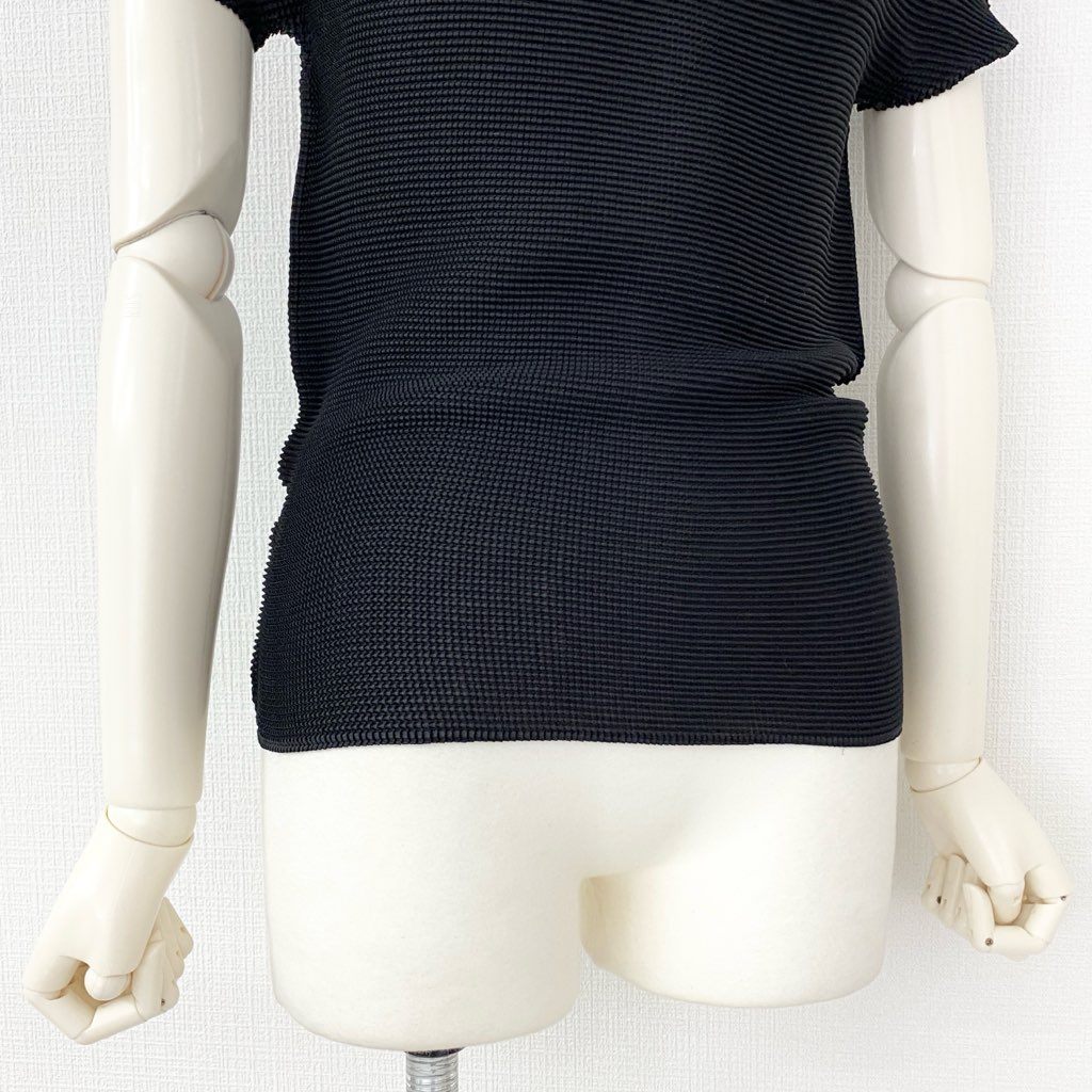 49d5 《美品》 me by ISSEY MIYAKE ミーバイ イッセイミヤケ PLEATS プリーツカットソー F ブラック ストレッチ MI21FJ416