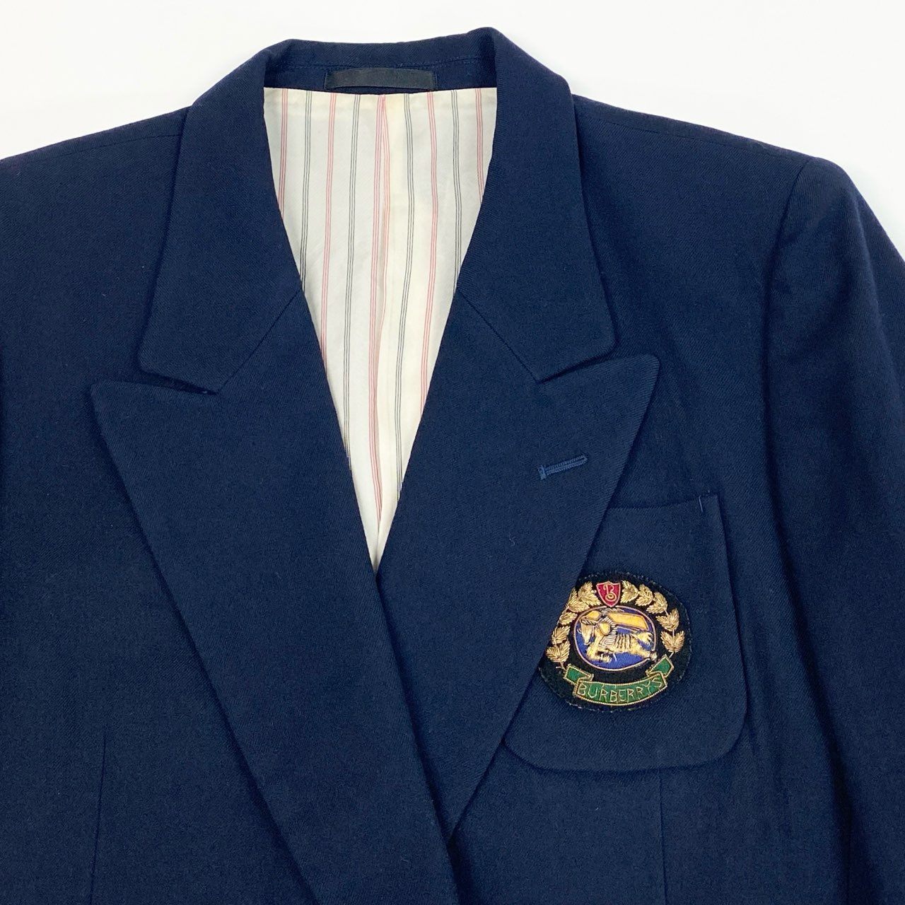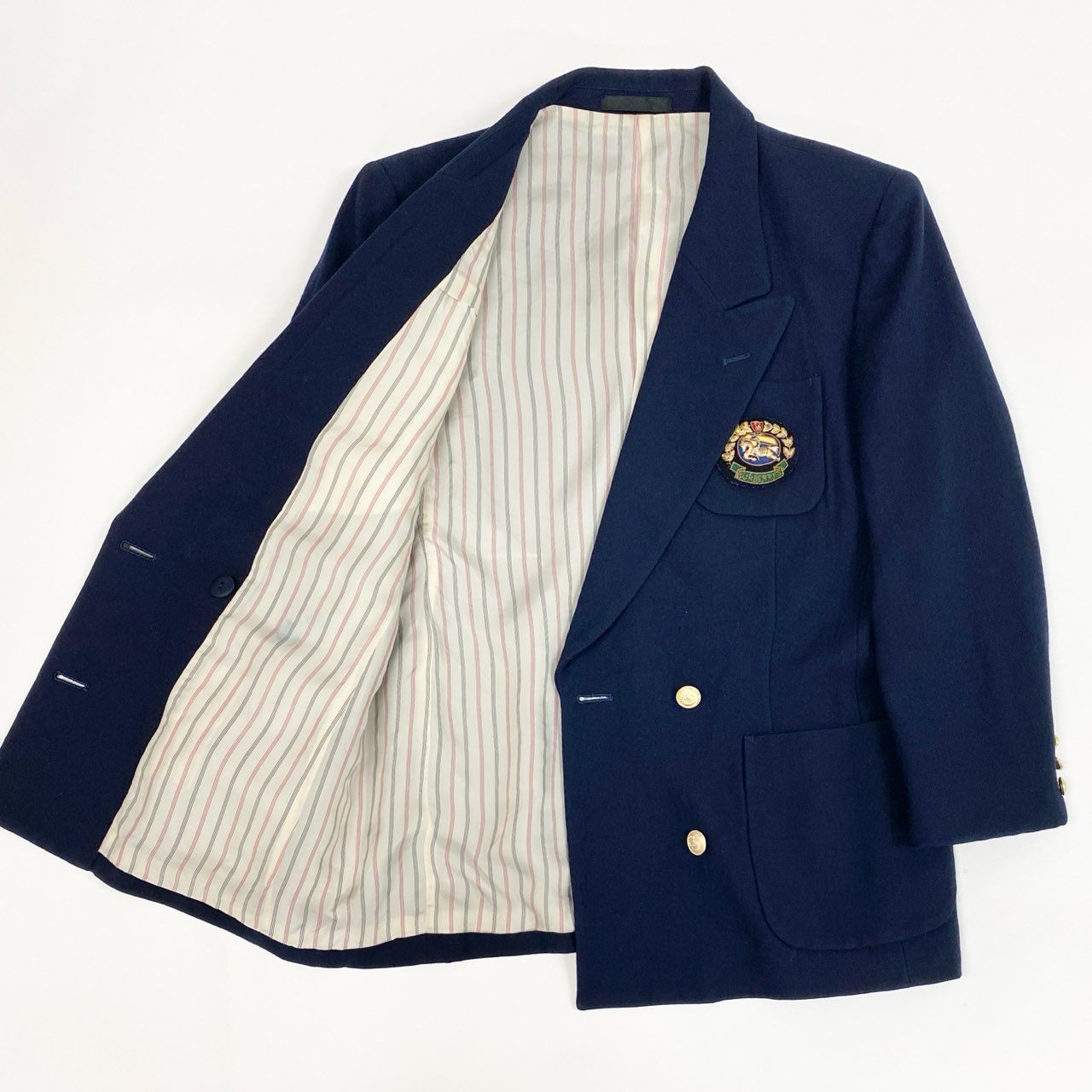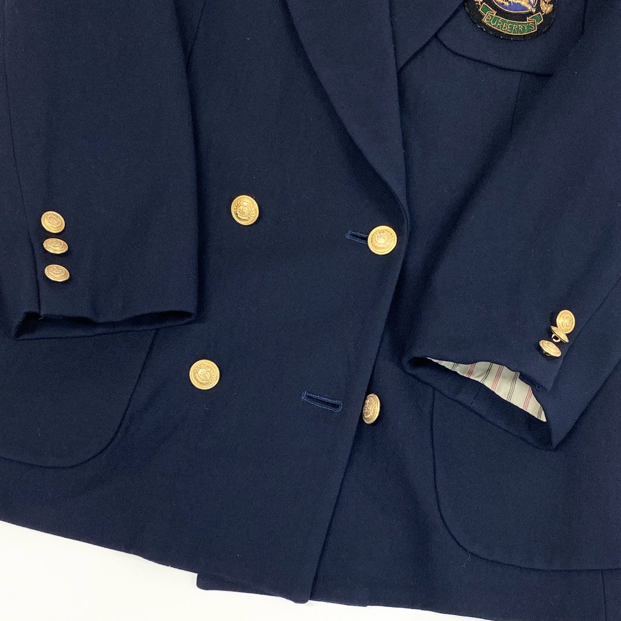 22a23 Burberrys バーバリーズ 紺ブレザー テーラードジャケット ダブルブレスト エンブレム ワッペン 9 ネイビー ウール レディースu02t