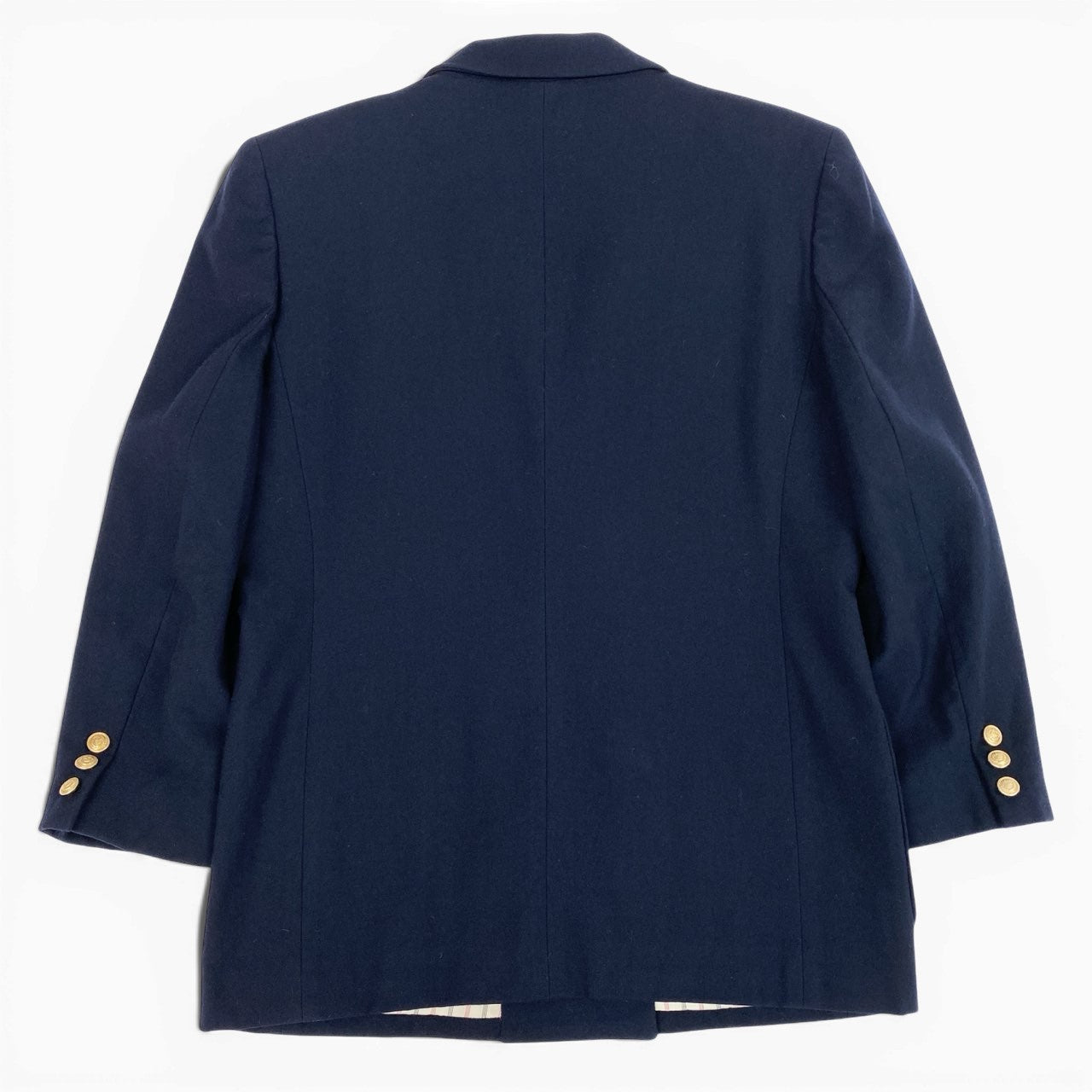 バーバリーのレディース紺ブレザーです。深みのあるネイビーカラーに、フロントのダブルブレスト仕様とゴールドボタンがクラシカルな存在感を演出。胸元にはエンブレムワッペンを配し、ブリティッシュテイストを強調しています。素材は上質なウールで、マットな質感と仕立ての良さが際立つ一着。オン・オフ問わず幅広いシーンで活躍します。