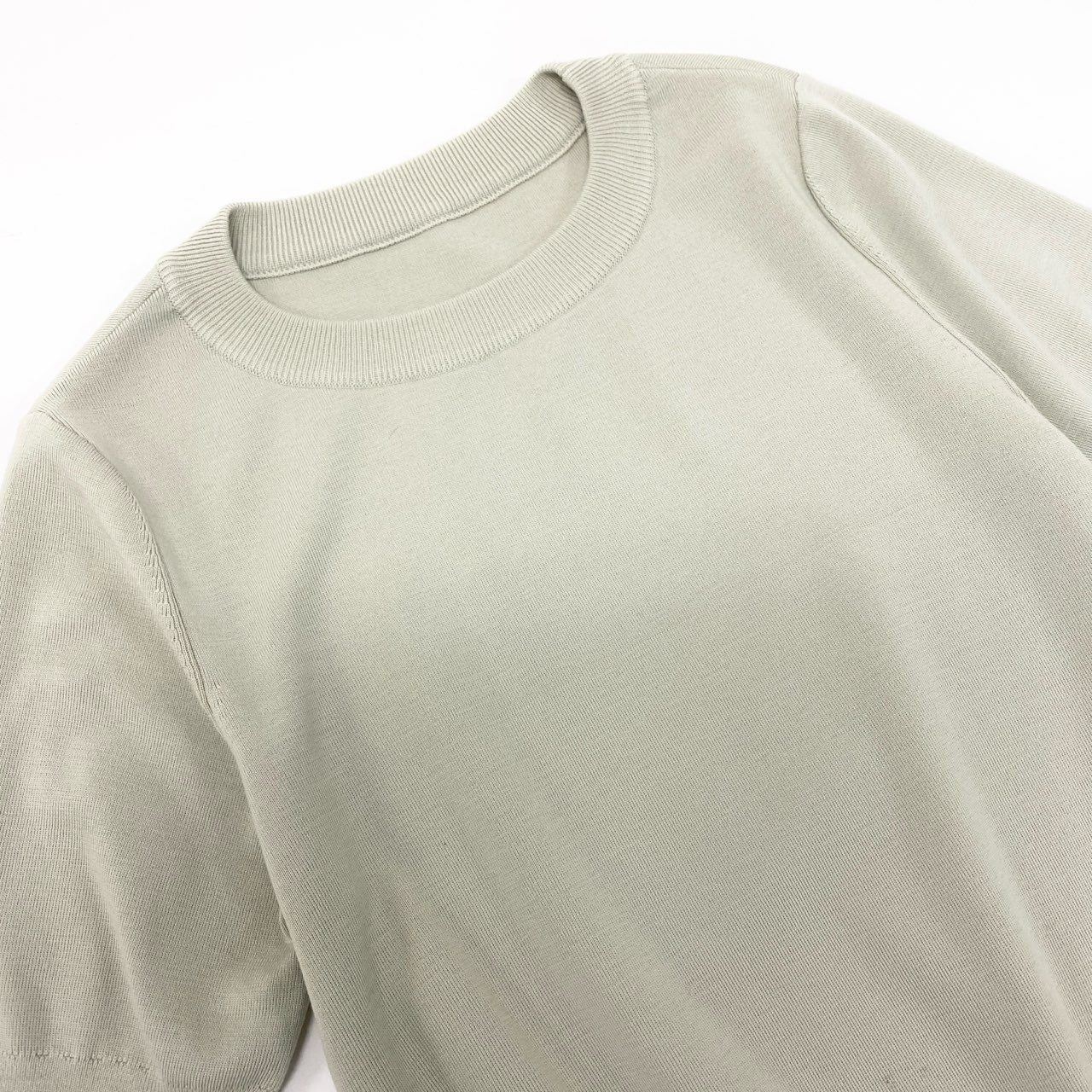 FOXEYの半袖ニット「Plaisir」。柔らかなパールグリーンは銀座本店限定カラーで、上品で洗練された印象を与えます。ウール100%ながらチクチク感の少ないしなやかな肌当たりで、長い季節で着られる軽やかなニット。裾には刺繍が施され、さりげなく高級感を引き立てます。スカートにもパンツにも合わせやすく、通勤・お食事・お出かけなど幅広く着回せる一枚です。