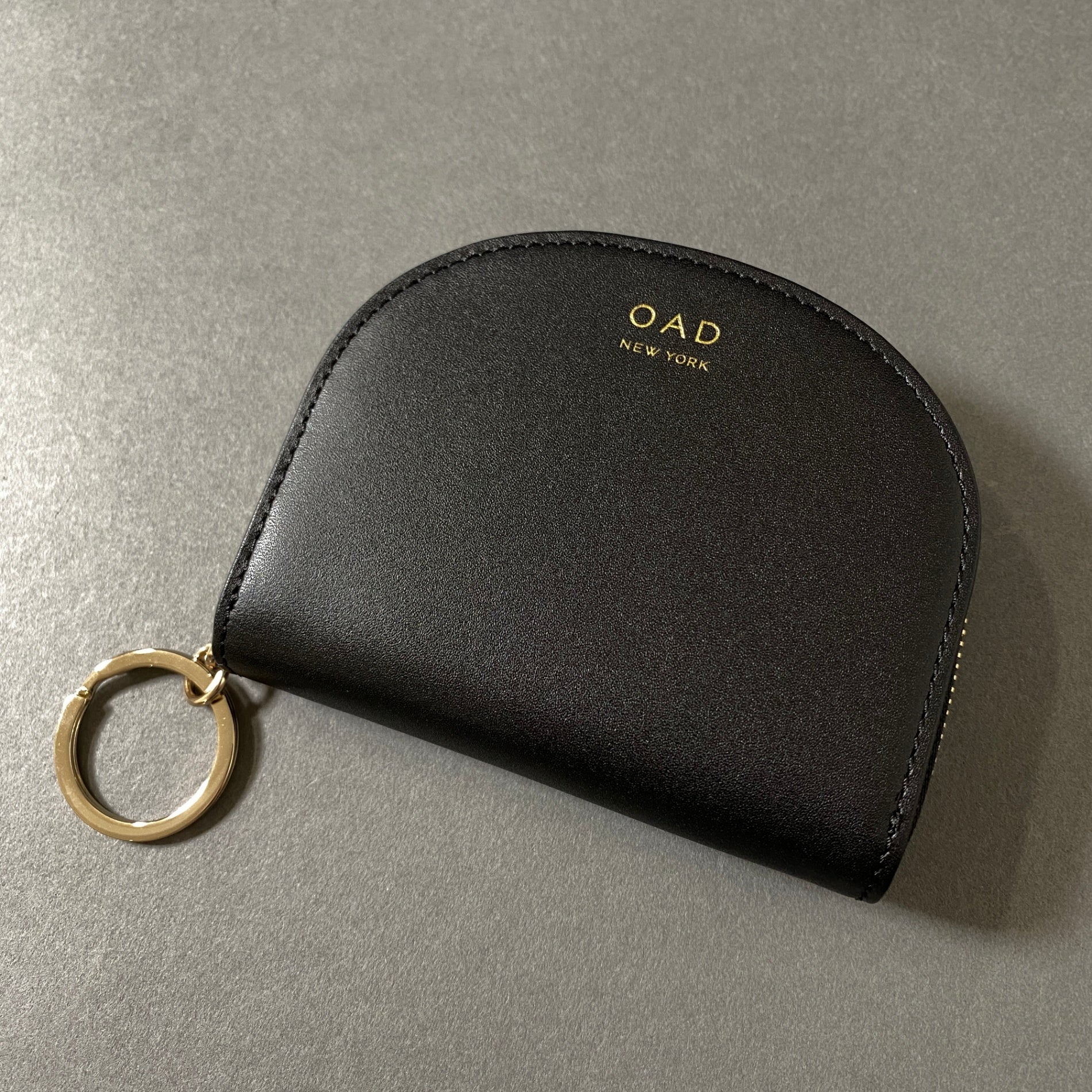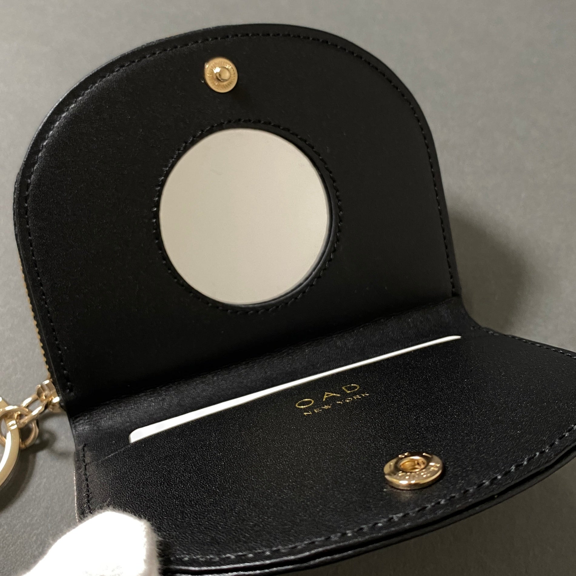 f28-7 《未使用保管品》 OAD NEW YORK オーエーディー ニューヨーク Dia Continental Mini Mirror Wallet ミニミラーウォレット ブラック レザー ラウンドジップ 財布