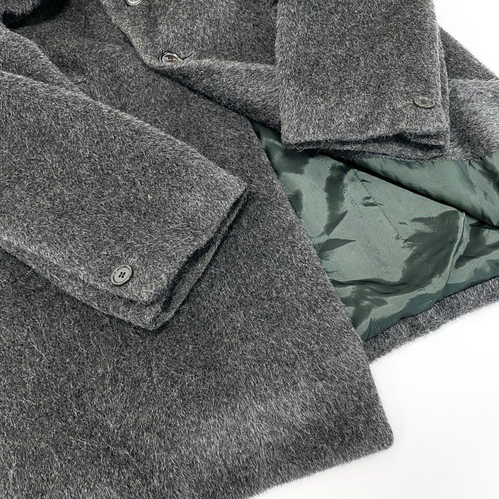 Gianni Versaceらしい存在感を放つ、アルパカ混素材のチェスターコートです。カラーはダークチャコールグレー系で、無地ながら奥行きのあるメランジ調の表情が上品さを演出します。毛足を感じるウール×アルパカのマットな質感で、見た目にも暖かみのある仕上がりです。大きめラペルとシンプルなボタンデザインがクラシックかつモードな印象を与え、きれいめからマニッシュなスタイルまで幅広く活躍します。